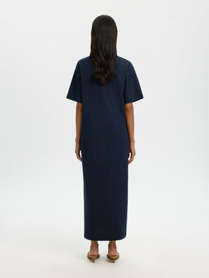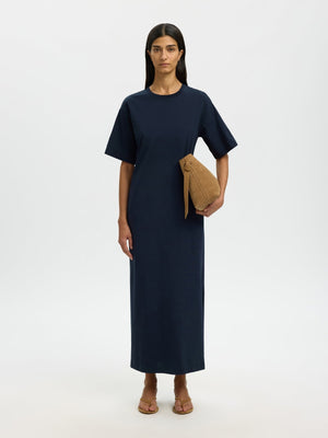 Essential pocket ankle kjole fra Selected Femme er den perfekte kombinasjonen av komfort og moderne damemote. Den ankellange kjolen har en avslappet passform, korte ermer og sort farge som gir et tidløst uttrykk. Laget i myk økologisk bomull føles den lett og behagelig mot huden, perfekt for vår og sommer.