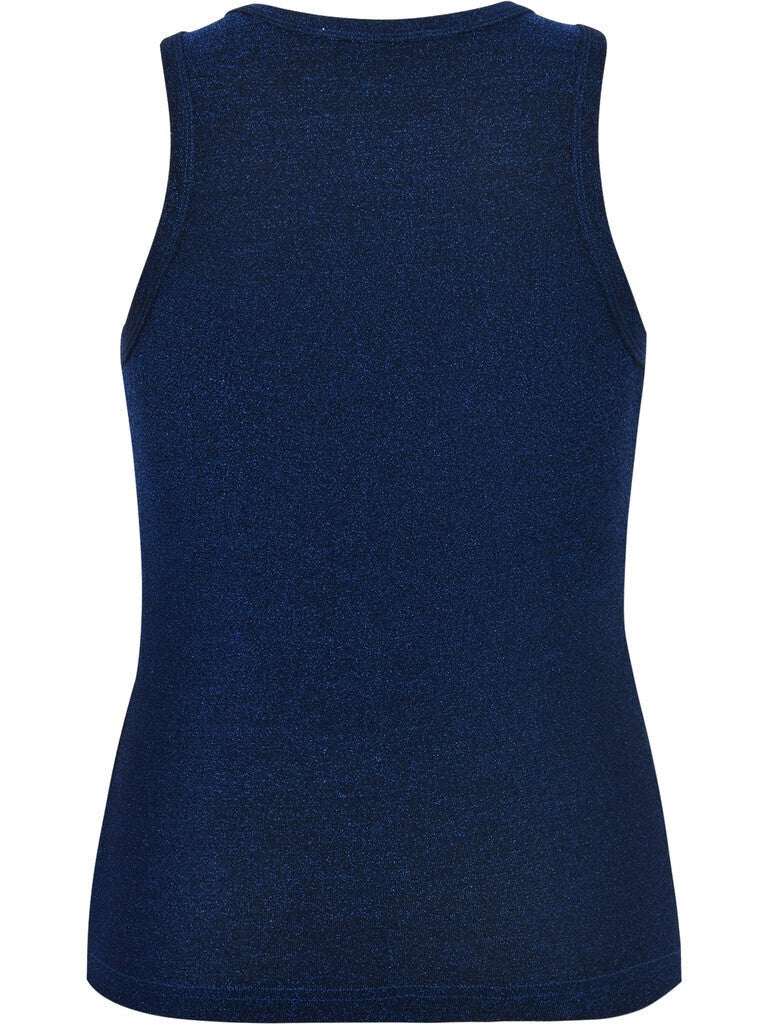 Eva tank top is a top with glitter. The top is sleeveless with a round neckline. The top is made of an elastic material that makes it flexible and comfortable to wear.