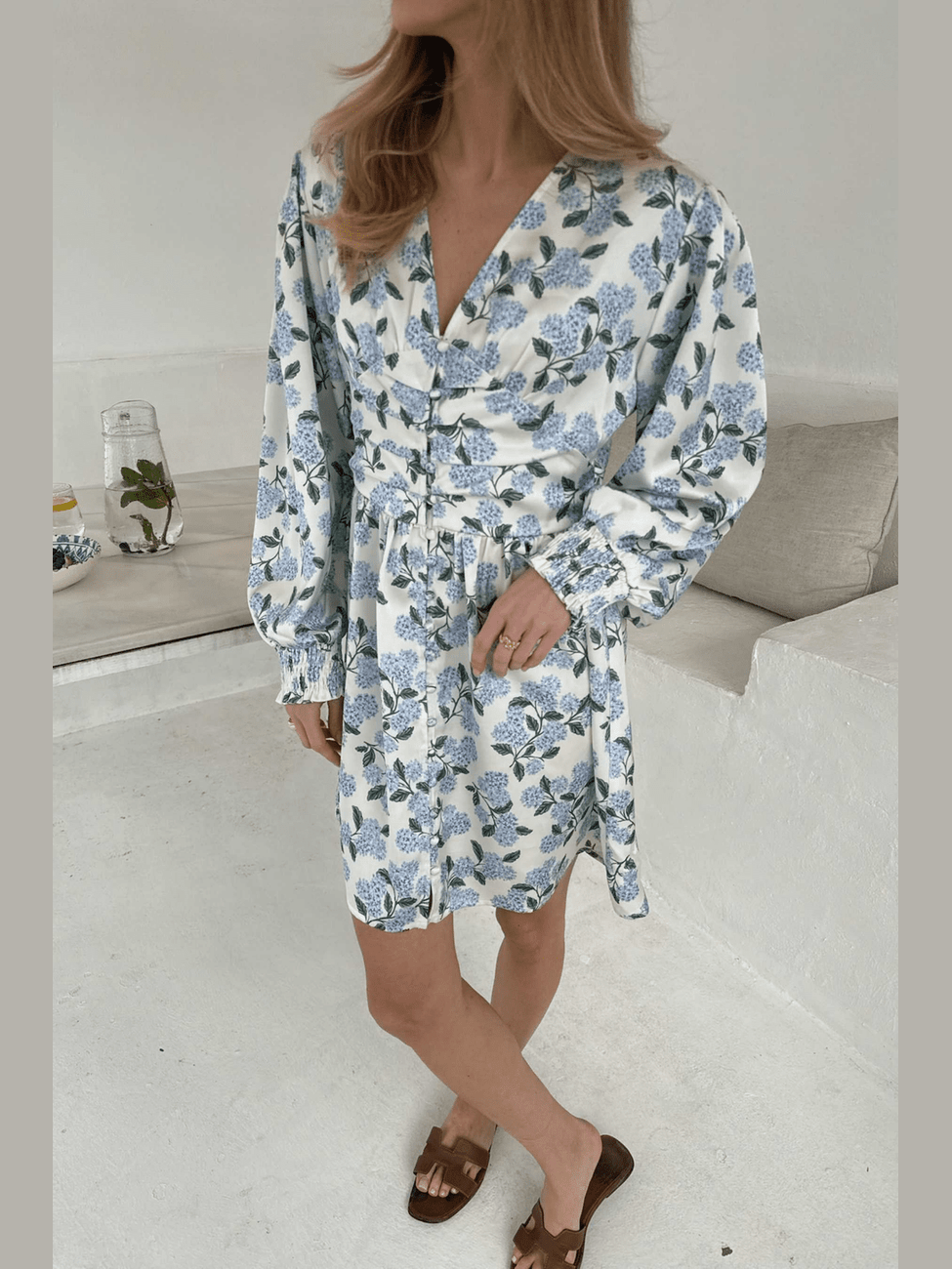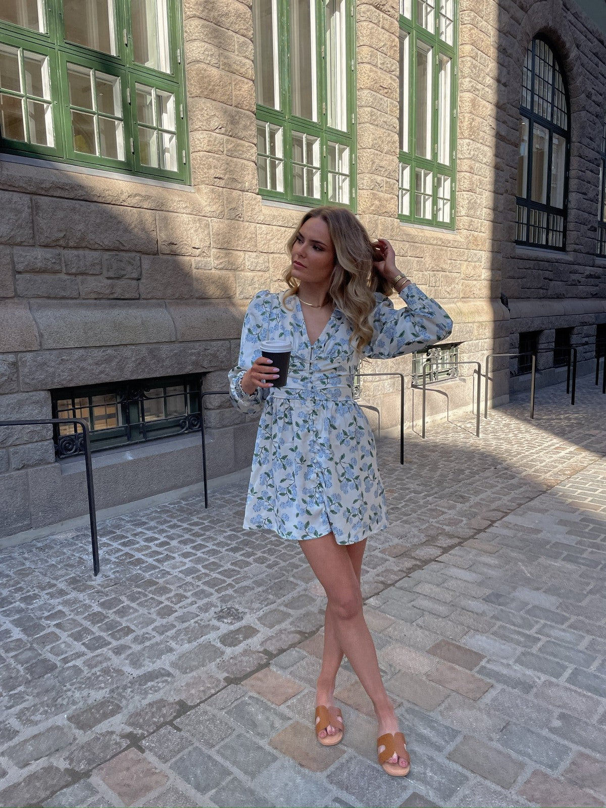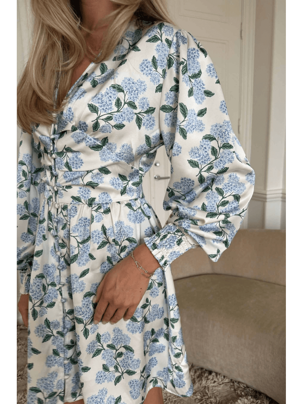 Se Adel kjole - blue hydrangea print stylet på Instagram
