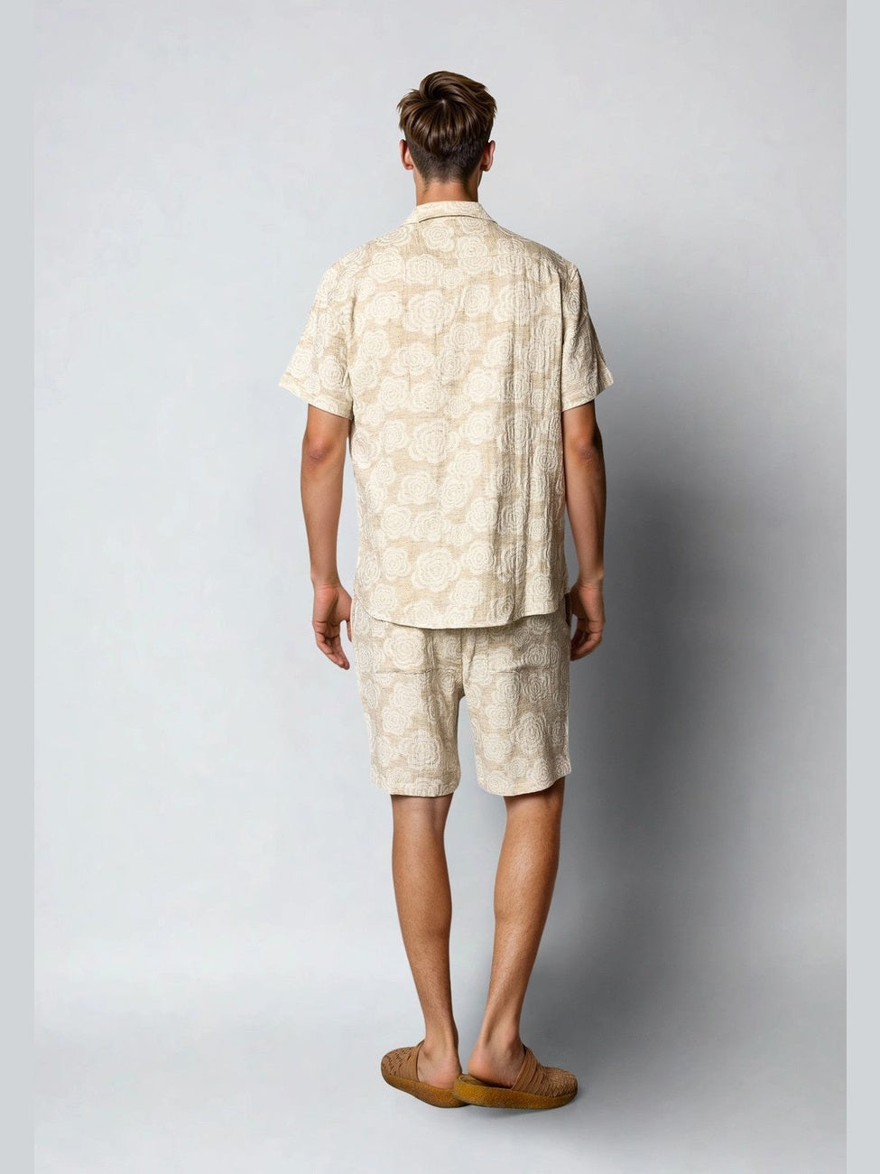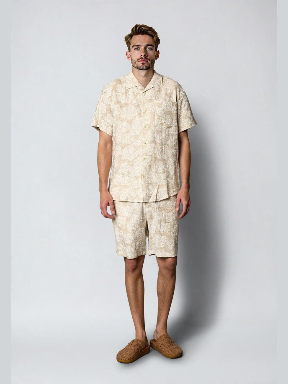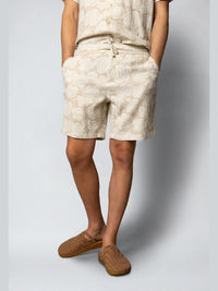 Stilige shorts med blomstrete strukturvevd stoff som gir et raffinert og moderne uttrykk. De har en komfortabel elastisk linning med snøring i livet for optimal passform.