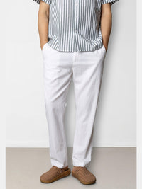 Vår nye Luca-kolleksjon i bomull og lin er perfekt for sesongen, og består av bukser, skjorter med korte og lange ermer, samt shorts. På bildet ser du en myk bukse med regular fit, elastisk linning og snøring i livet – like fin til hverdags som til mer pyntede anledninger. Tilgjengelig i flere fargevarianter.