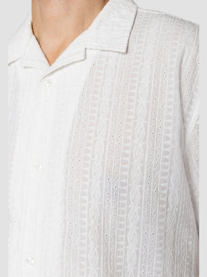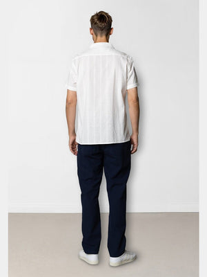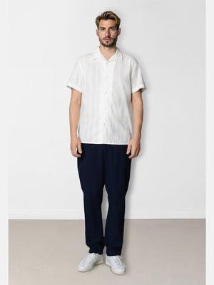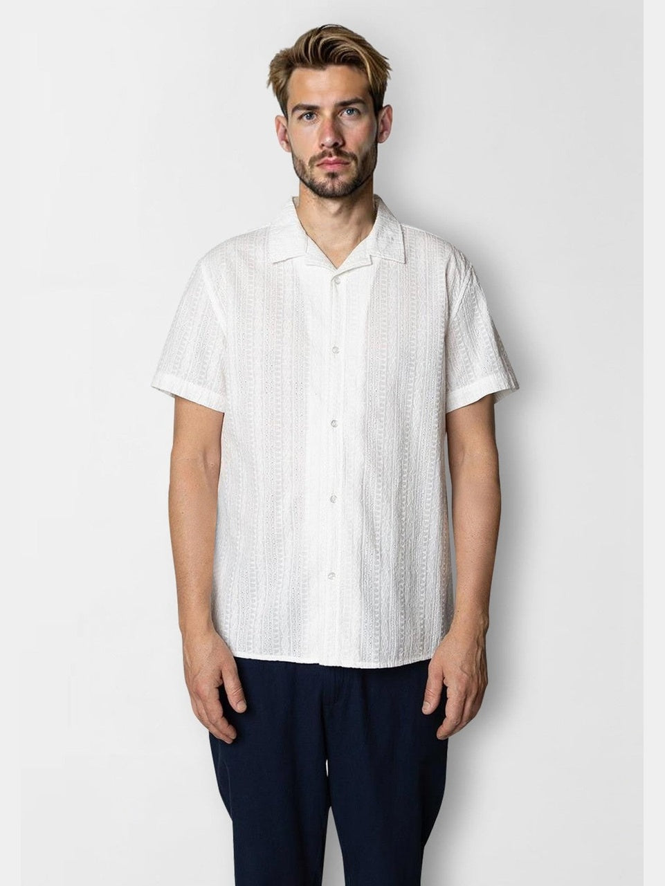 A stylish short-sleeve shirt made from 100% cotton. The patterned fabric adds a unique touch. Designed with a regular/relaxed fit and a classic bowling collar. Model is 188 cm tall and wears size L.