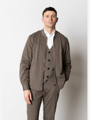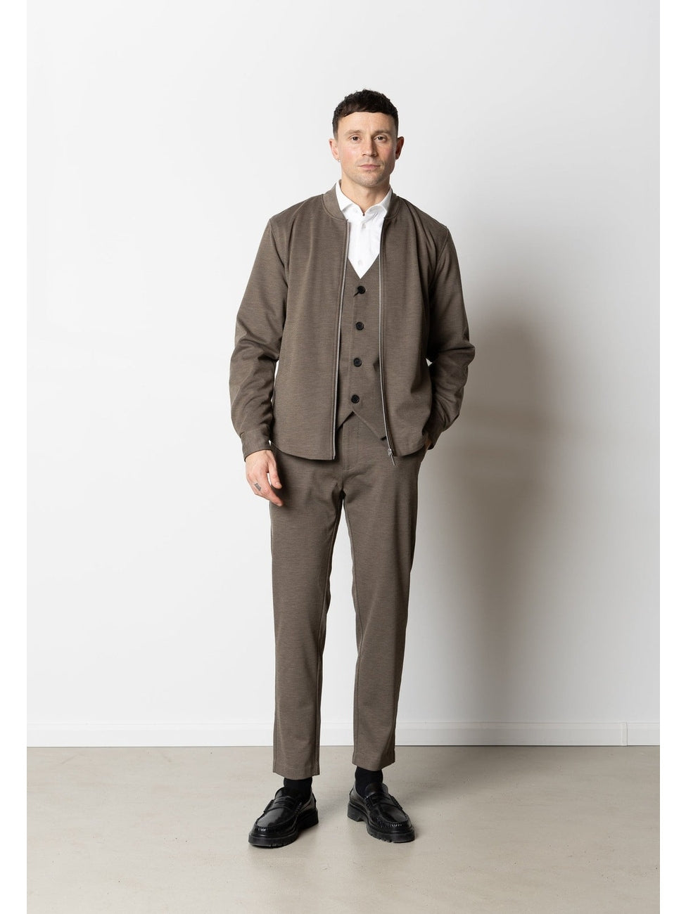 Denne jakken er laget av et mykt og stretchy jerseystoff. Jakken har en regular fit, er noe lengre bak og har sidelommer. Modellen bruker størrelse L (188 cm høy).