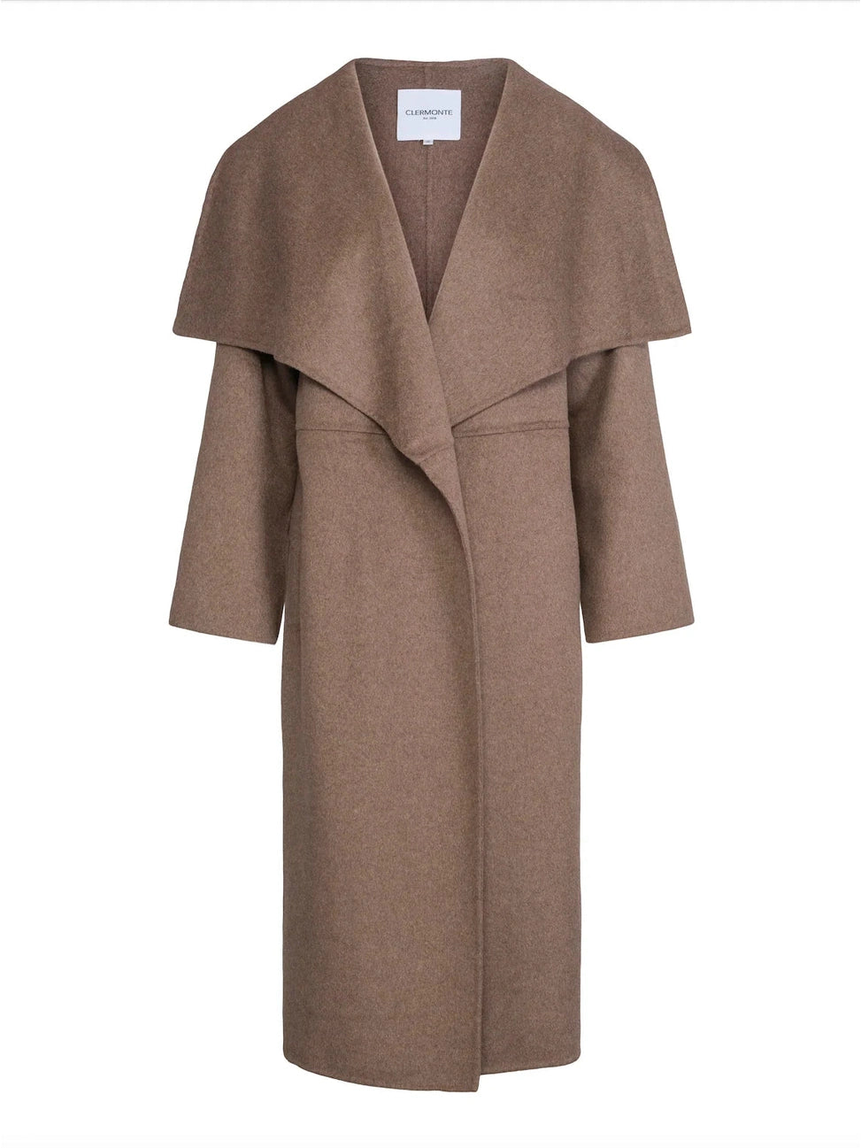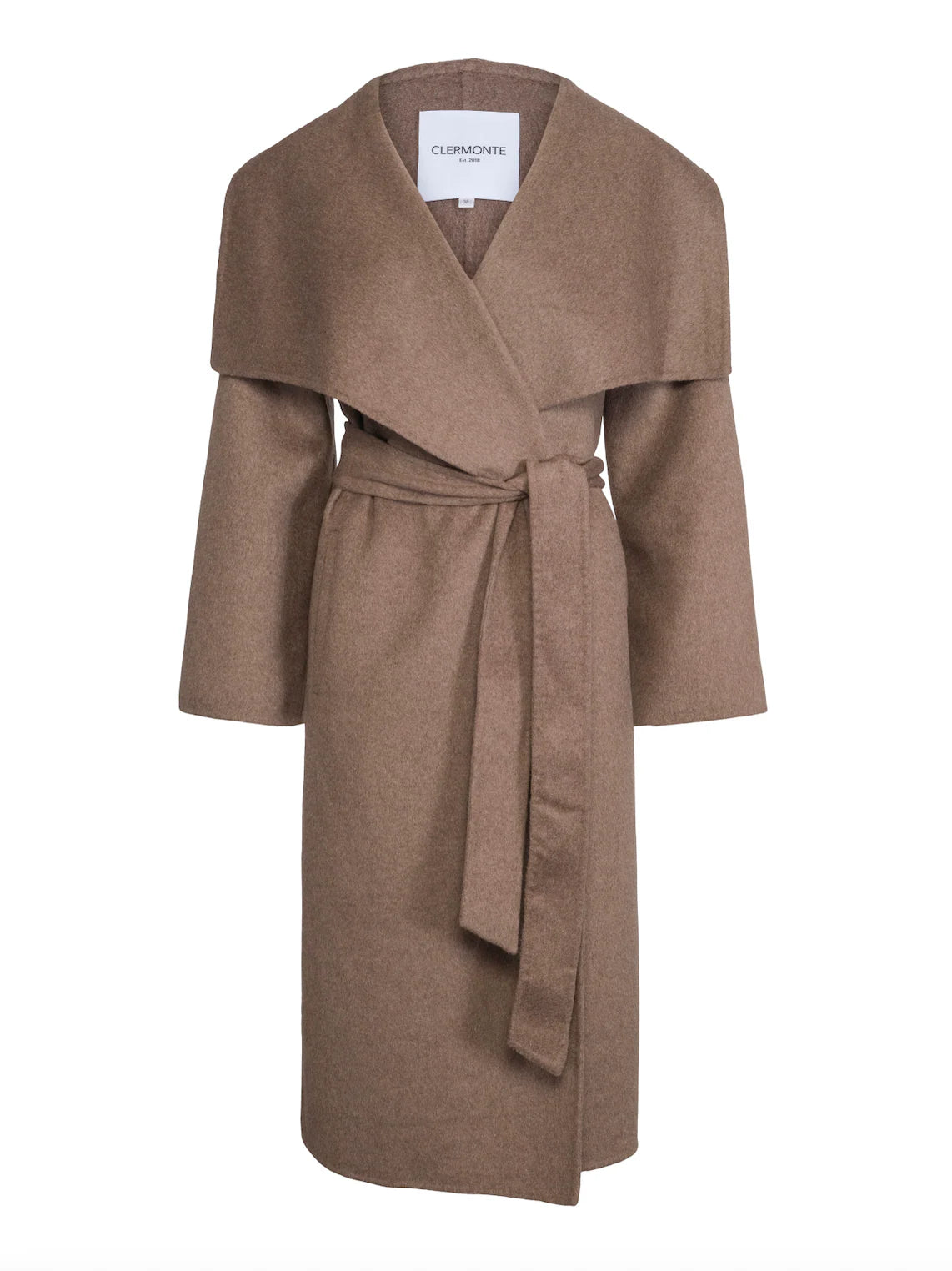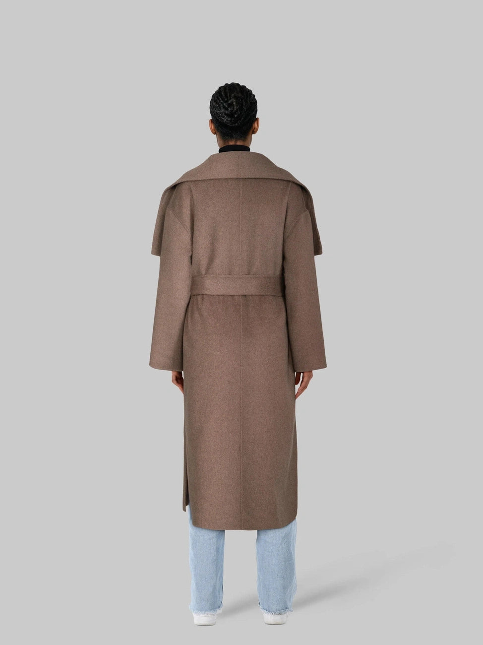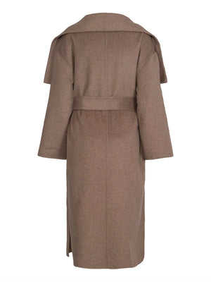 Nova ull kåpen har en avslappet, løs passform for et statement-utseende. Den har to lommer i front og et avtagbart midjebelte.