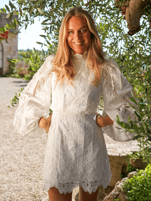 Den eksklusive blondekvaliteten er lett og luftig, og gjør kjolen behagelig selv på varme dager. Romantisk, raffinert og selvsikker – kanskje dette er din nye favoritt?