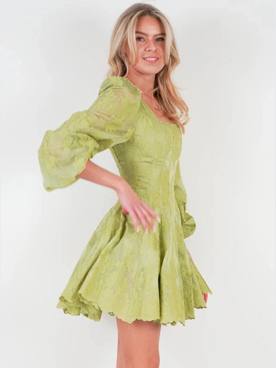 Sophie Lace i Kelly Green er en elegant blondekjole som kombinerer tidløs design med moderne femininitet. Den vakre grønne fargen gir et eksklusivt og sofistikert uttrykk, perfekt til fest, bryllup, selskap, julebord og andre spesielle anledninger. Kjolen er designet i delikat blonde med luksuriøse detaljer som gir et romantisk og stilrent preg, samtidig som den føles komfortabel mot huden. Dette er en bestselger-kjole som raskt har blitt en favoritt blant kunder som ønsker en unik og iøynefallende selskapskjole.