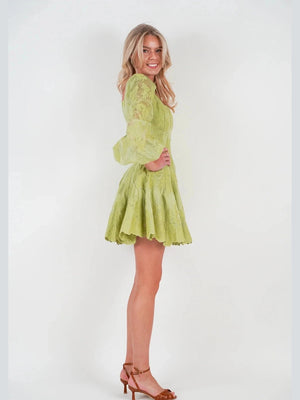 Den klassiske silhuetten og de gjennomførte blondedetaljene gjør Sophie Lace til et sikkert valg når du vil føle deg pyntet, feminin og velkledd. Style den med hæler og smykker for en komplett festlook, eller med en blazer for et mer sofistikert antrekk. En allsidig og eksklusiv grønn blondekjole som passer like godt til bryllupsgjest, festkjole og selskapskjole – en tidløs investering i garderoben som aldri går av moten.