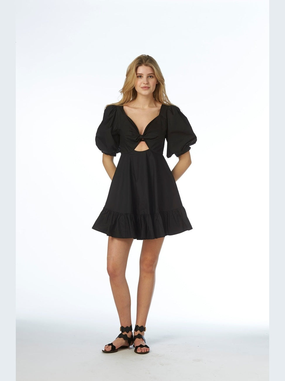 Alba Twist-kjolen er et sjarmerende og lekent design laget av 100 % poplin-bomull. Den unike vri-detaljen foran tilfører et elegant preg, supplert med et diskret utsnitt for et moderne uttrykk. Med voluminøse puff-ermer og en rysjet kant, skaper denne kjolen en leken, men sofistikert silhuett. Perfekt for varme dager og spesielle anledninger – Alba Twist-kjolen er en herlig kombinasjon av komfort og stil.