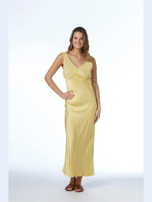 Cecilie-kjolen er en fantastisk maxikjole som utstråler uanstrengt eleganse. Den har en bustier laget av 100 % bomullshåndverk i en delikat lysegul farge, som gir et preg av kunstnerisk sjarm. Kjolen, laget av 100 % viskose, har en myk, flytende tekstur med en smal passform som vakkert konturerer silhuetten. Perfekt for anledninger i varmt vær eller som et statement-sommerantrekk, kombinerer denne kjolen komfort og sofistikasjon på en sømløs måte.