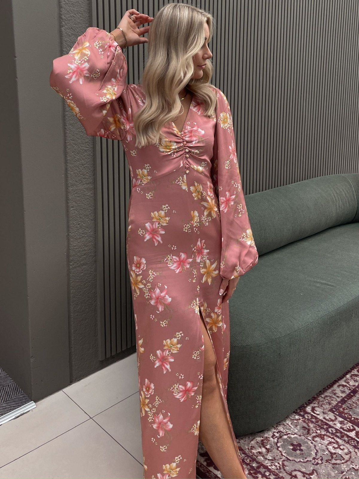 Ida Maxi Dress er en elegant kjole laget av 100 % viskose, kjent for sitt lette og myke stoff. Kjolen har markerte ballongermer som gir et moderne preg, kombinert med en klassisk, flytende silhuett som gir både komfort og stil. Perfekt til alt fra sommerdager til kveldsarrangementer.