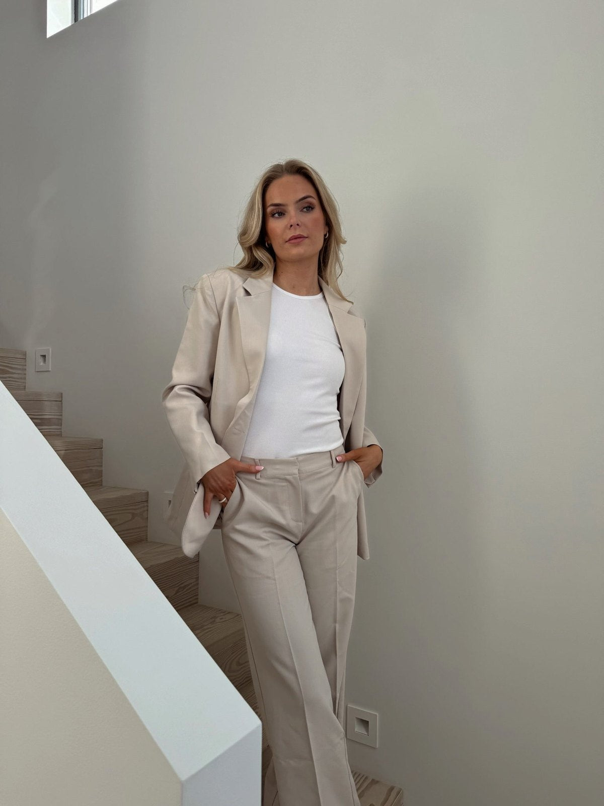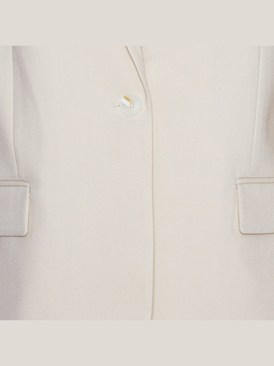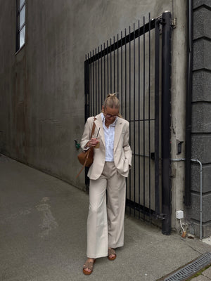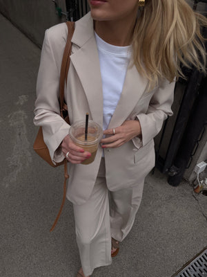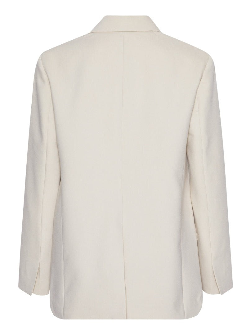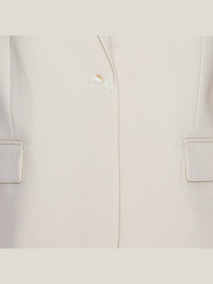 Utstrål sofistikasjon med denne elegante blazer i Ivory, designet for å løfte ethvert antrekk. Den enkeltradede blazeren har en skreddersydd, men oversized passform og klassiske slag. Den nøytrale hvite fargen gjør den til et allsidig plagg, perfekt for formelle anledninger, kontorantrekk eller som et lag over mer avslappede kombinasjoner. Diskrete klafflommer foran og en stilren søm på ryggen forsterker det tidløse uttrykket.