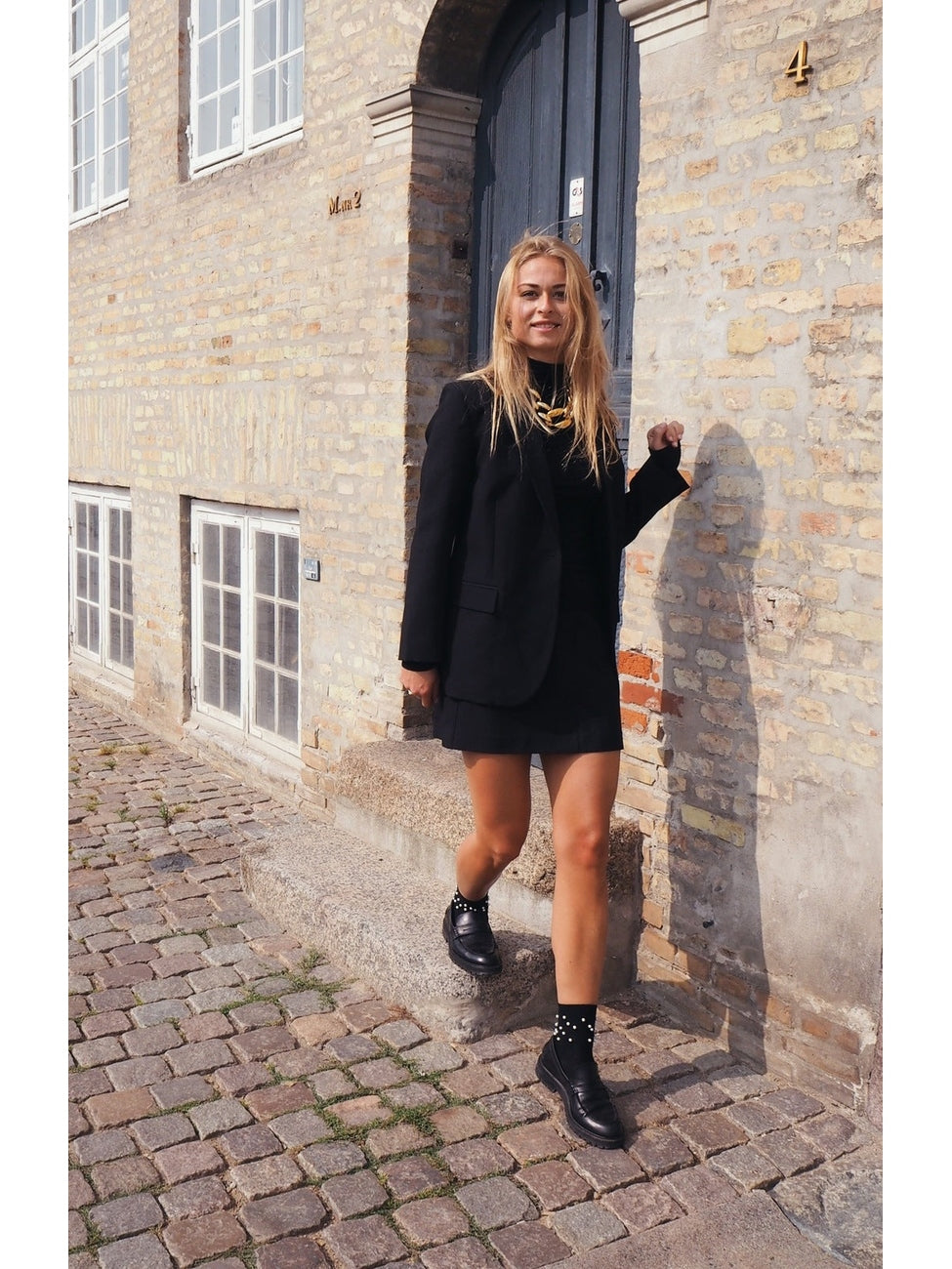 Marie Skirt er designet med normal passform, minilengde og midjehøjde. Skjørtet er med beltehemper, som gjør at du kan bruke belte til. Det har praktiske sidelommer og lukkes med hempe og glidelås foran. Dette er et elegant og tidløst skjørt med en moderne twist. Bruk Marie skjørt med en skjorte og den tilhørende Marie blazer for en profesjonell og polert look på kontoret, eller med en strikk og sneakers for en mer avslappet og trendy stil i hverdagen.