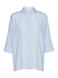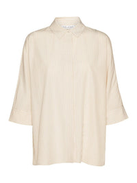 Mya-skjorten kombinerer klassisk design med moderne komfort. Med et tidløst stripemønster er denne lette, oversized skjorten perfekt for uanstrengt lag-på-lag eller å bruke alene. Den avslappede passformen og de drop-skulderne gjør den ideell for et uformelt, men sofistikert utseende. Med brede trekvart-ermer og en spiss krage, gir den et moderne preg på et garderobebasics.