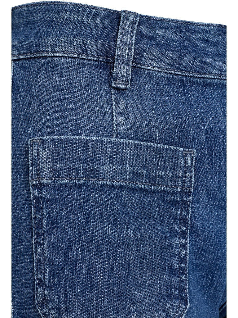 Den distinkte brede åpningen ved kanten og de lappede lommene gir et unikt preg på disse allsidige jeansene.