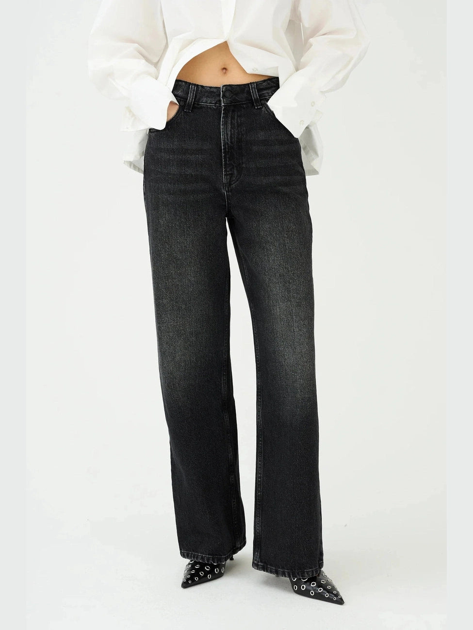 Brooke-jeansen er ditt sorte denim-plagg du kan bruke overalt. Med høy midje og rette ben kombinerer de struktur og komfort i en stilig silhuett. Den vasket svarte finishen gir et brukt preg samtidig som den holder uttrykket sofistikert og allsidig.