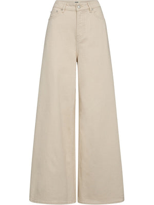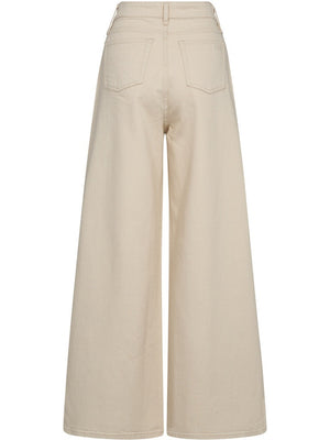 Disse buksene kommer i en delikat beige farge med en stilig løs passform og brede bein som gir en avslappet look. Den høye midjen gir et klassisk snitt som forlenger bena, og jeansstoffet sikrer en komfortabel og slitesterk passform.