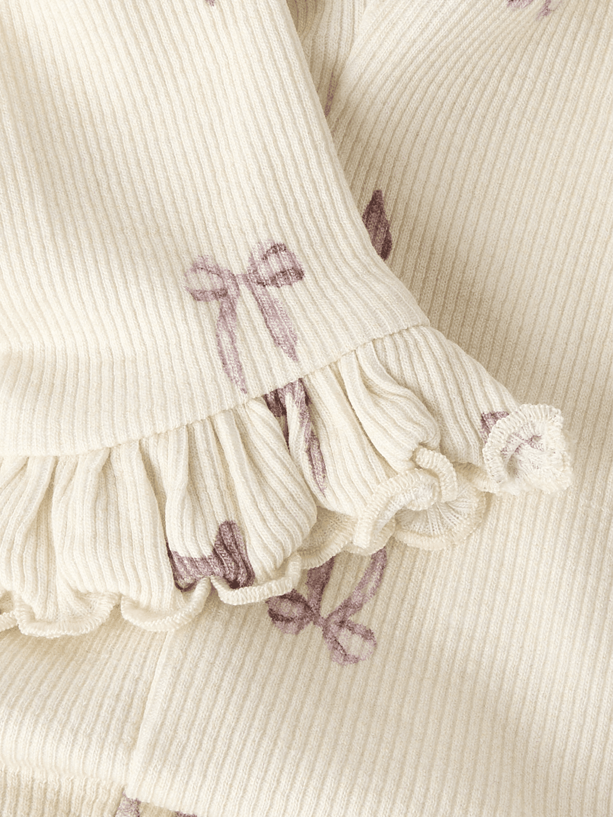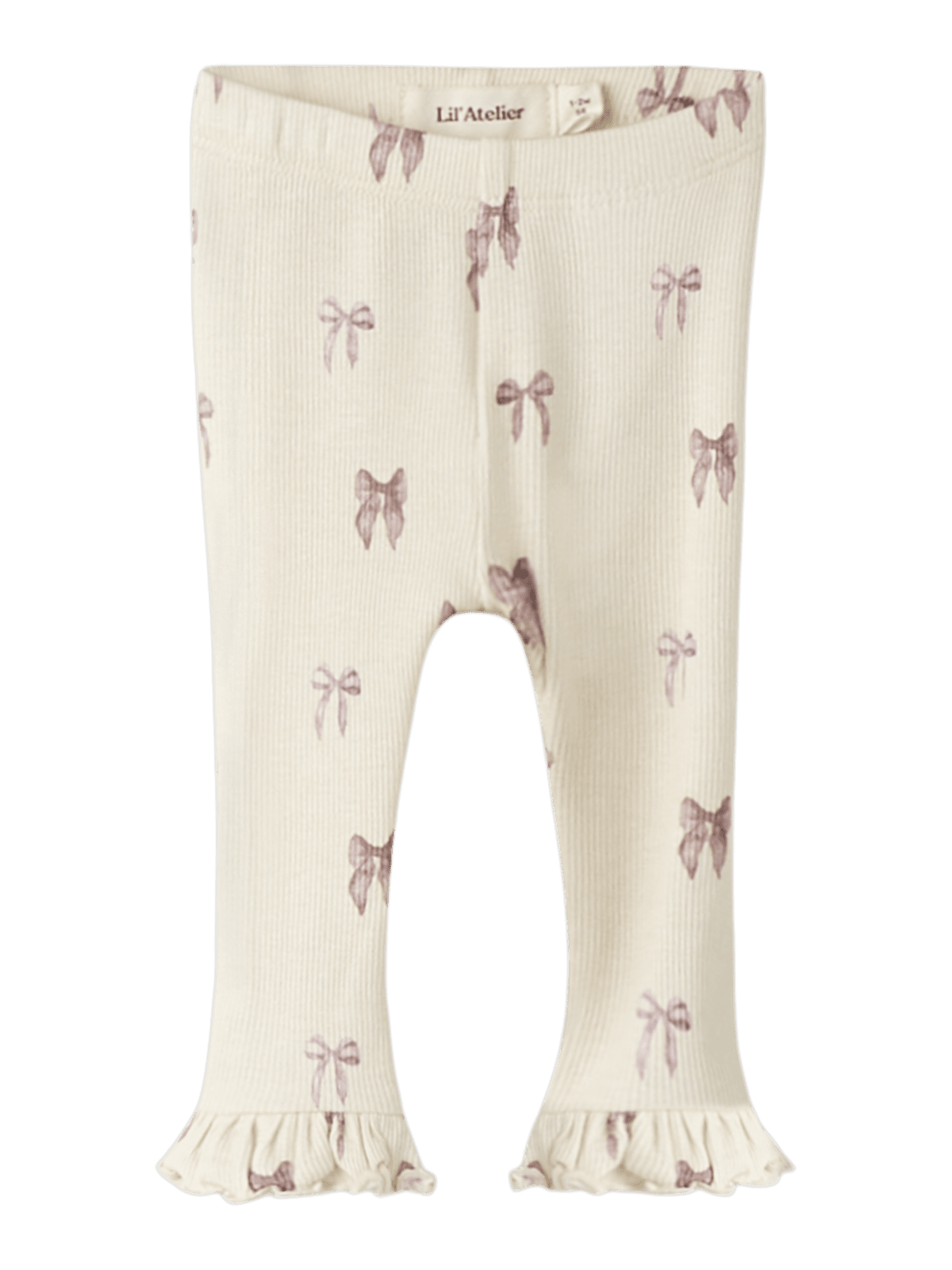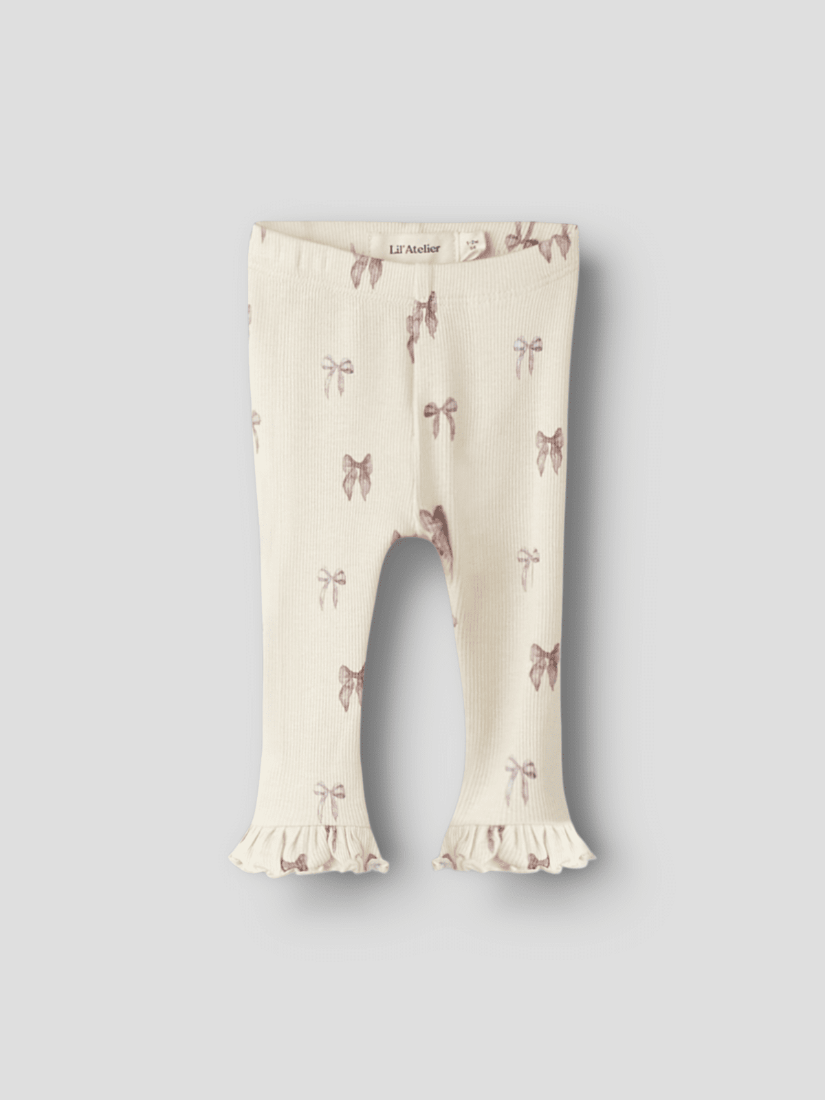 Sett sammen det perfekte antrekket til barnet ditt med hverdagsstyles av høy kvalitet, og skap en komfortabel og trendy look. Jersey er et lett og elastisk stoff med en myk overflate og innside for en behagelig følelse og bevegelsesfrihet. - Produkttype : Leggings - Detaljer : Babylock-detaljer, Elastisk linning, Rysjedetalj - Mønster : Printet er gjentatt over hele overflaten av produktet - Passform : Slim Fit - Obs : ADVARSEL! Hold borte fra flammer.