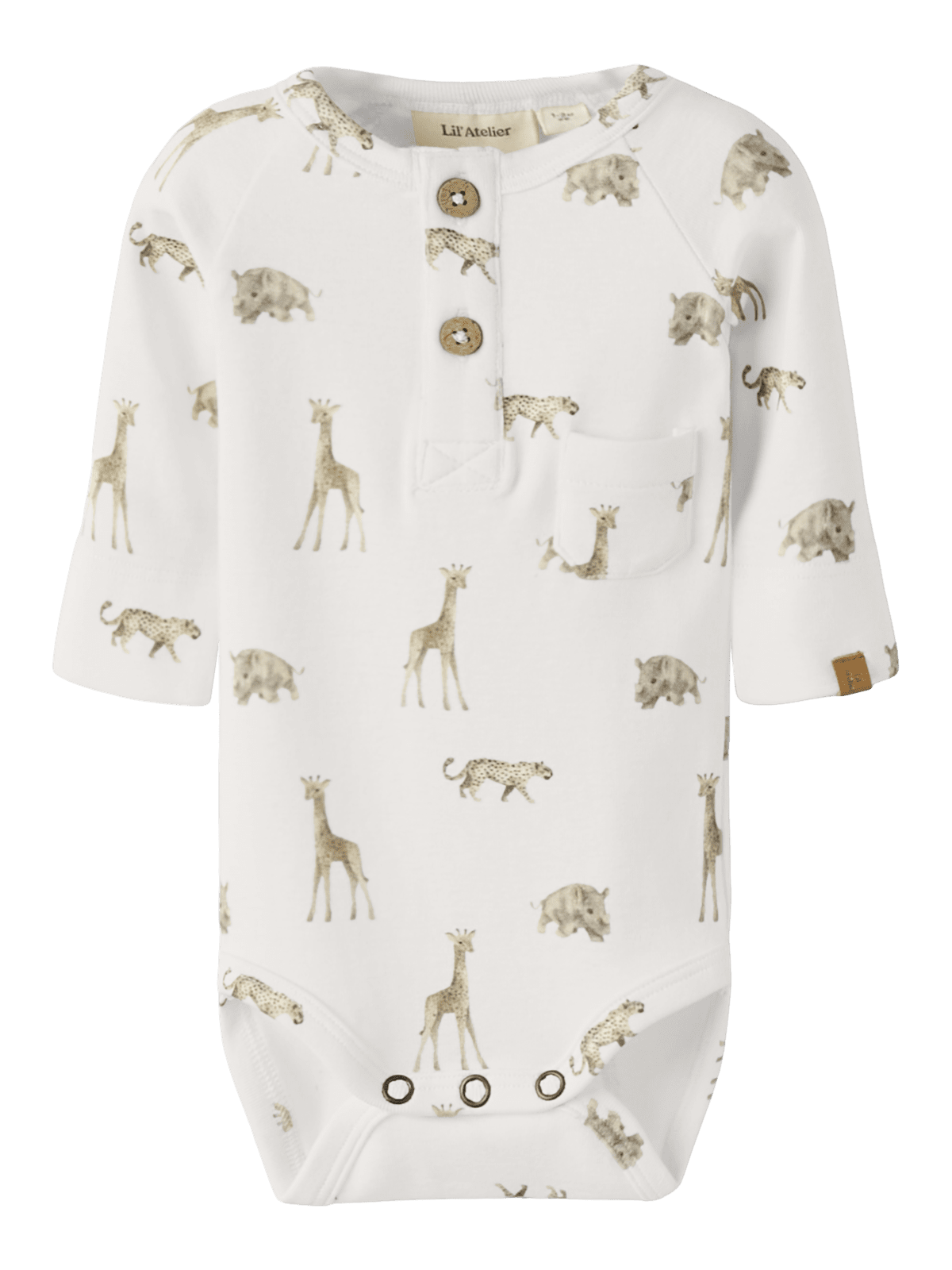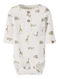 Sett sammen det perfekte antrekket til barnet ditt med hverdagsstyles av høy kvalitet, og skap en komfortabel og trendy look. Jersey er et lett og elastisk stoff med en myk overflate og innside for en behagelig følelse og bevegelsesfrihet. - Produkttype : Body - Hals : O-hals - Erme : Lange ermer - Lukking : Knappelukking, Trykknapplukking i skrittet - Lommer : Brystlomme - Detaljer : EVA-mellomsåle - Mønster : Printet er gjentatt over hele overflaten av produktet - Obs : ADVARSEL! Hold borte fra flammer.