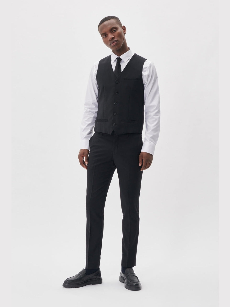 Denne dressvesten har en slim fit og er laget med stretch i både inner- og ytterfôr for en komfortabel og bevegelig passform. Den har knappestenging og et klassisk, stilrent design. Tilhørende sett med blazer (Jonathan blazer) og dressbukse (Vincent bukse).