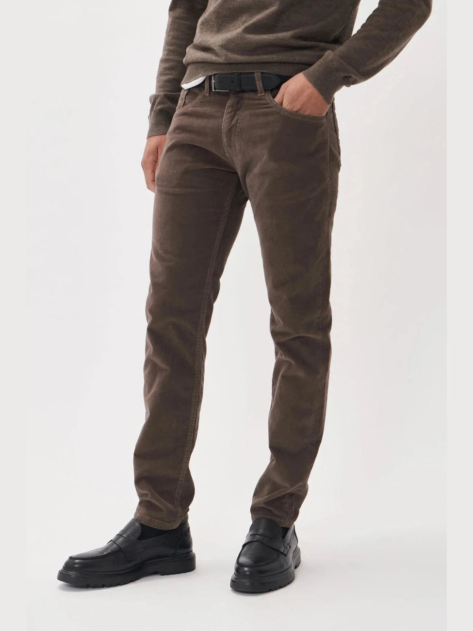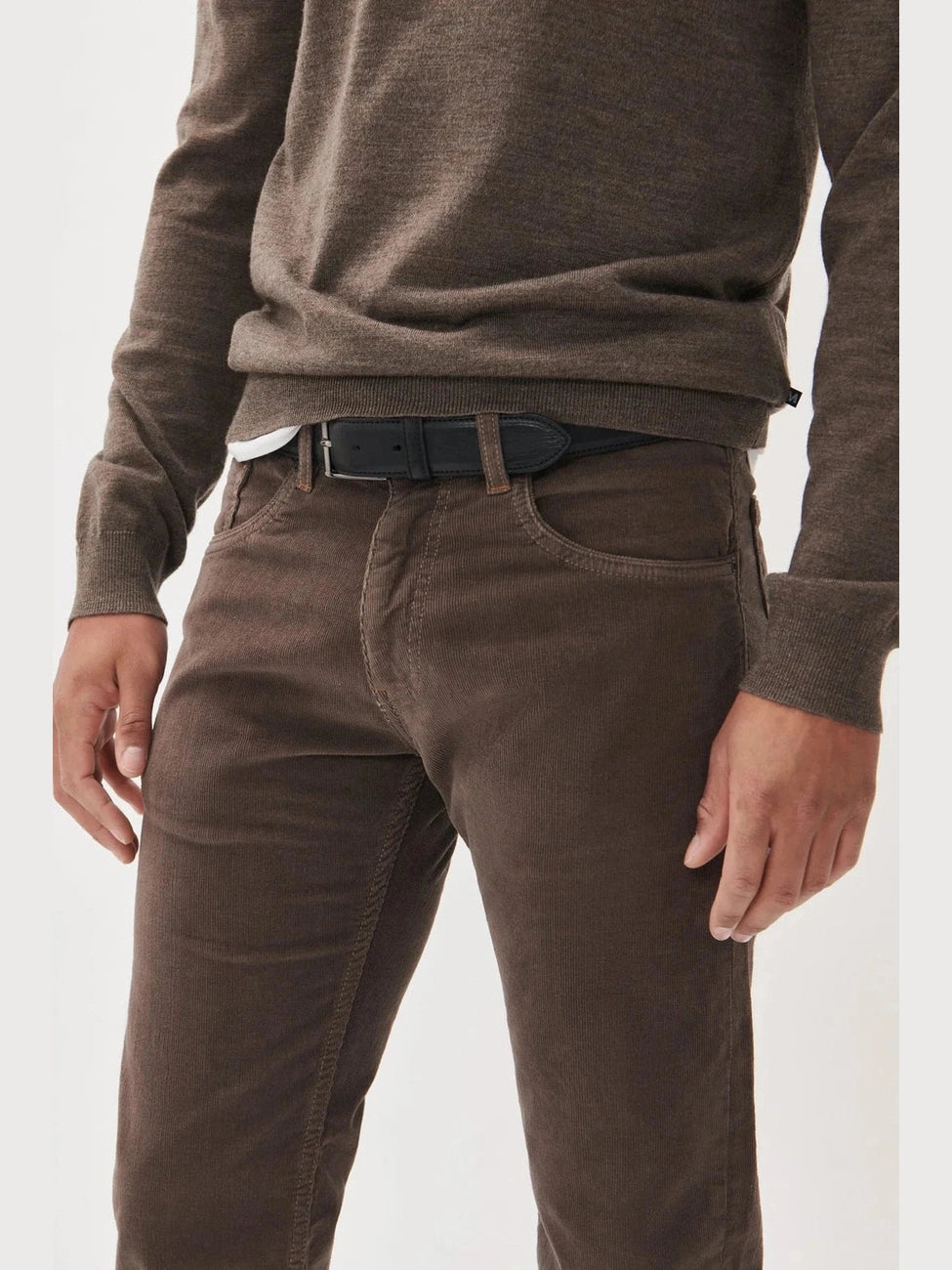Denne Pete cord buksen i morel er et utmerket valg for både hverdag og fest. Den brune fargen gir et raffinert uttrykk, mens kordfløyelstoffet gir buksen en behagelig tekstur. Denne buksen passer også utmerket i høst-, vår- og vintersesongen, noe som gjør den til en allsidig del av garderoben.