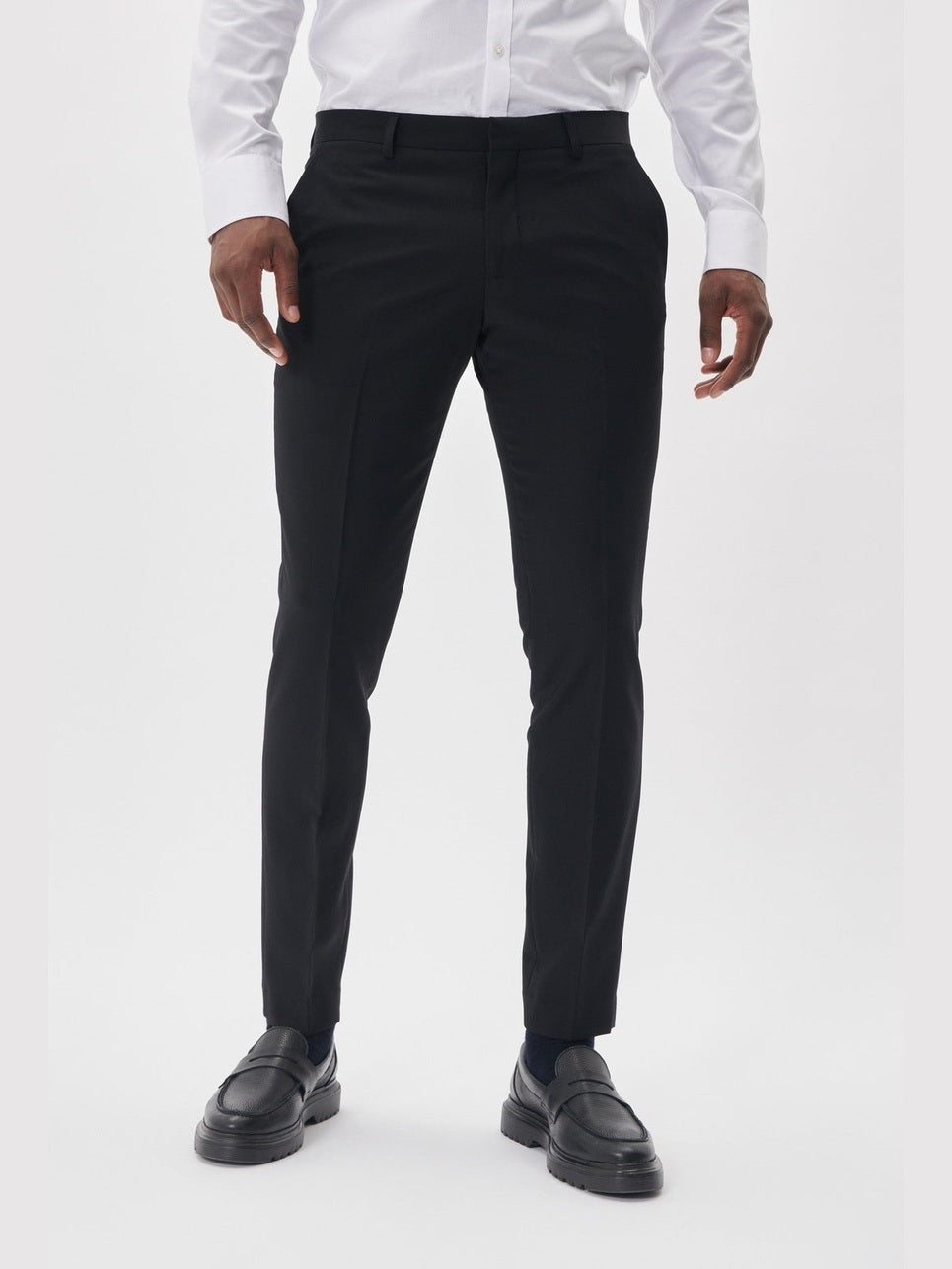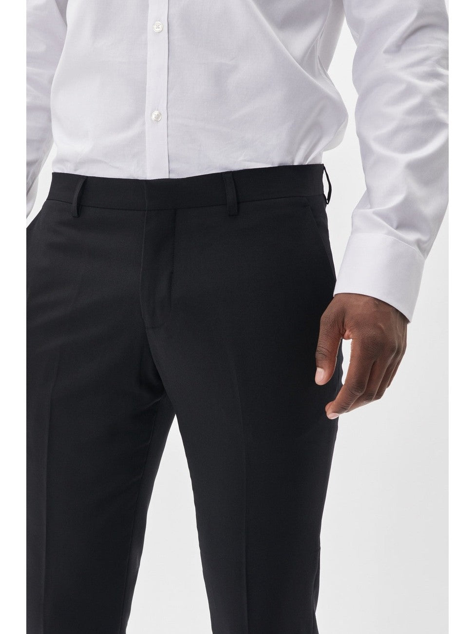 Denne slim fit-dressbuksen kombinerer elegant design med optimal komfort. Med stretch i både ytterstoff og fôr gir den en fleksibel passform som sikrer bevegelsesfrihet hele dagen. Perfekt for både formelle og semi-formelle anledninger. Har tilhørende blazer (Jonathan blazer) og vest (breck vest).