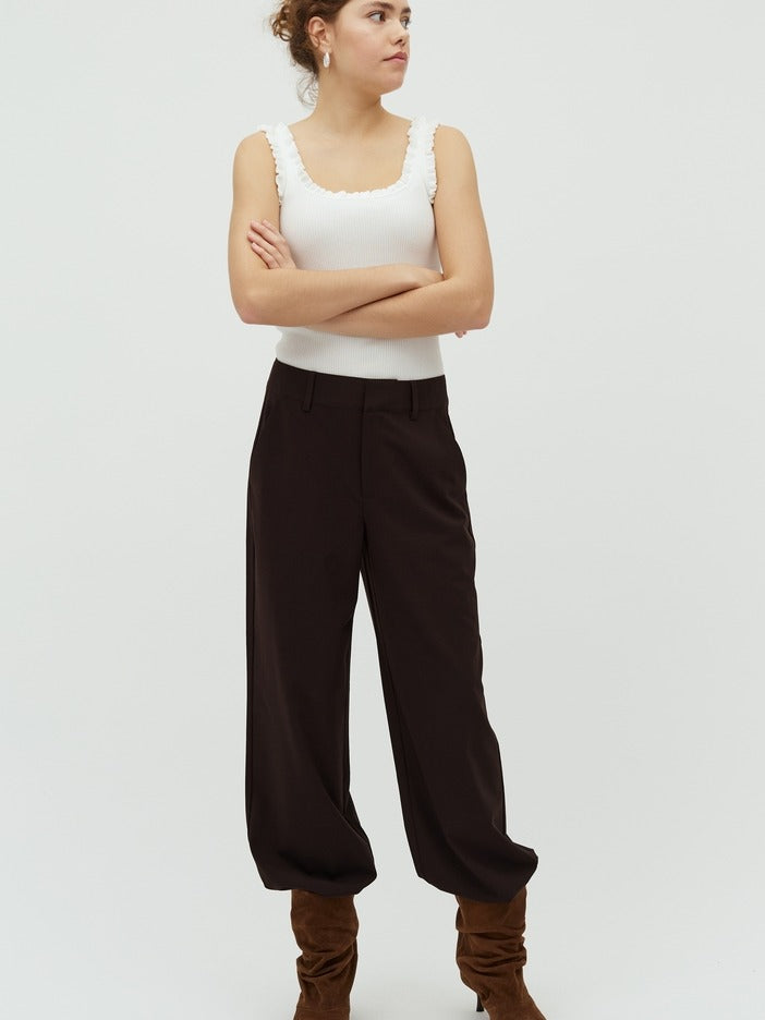 Rihnwen bukse i fargen java er et elegant og allsidig plagg som passer til enhver anledning. Med sin avslappede passform kombinert med et sofistikert design, tilbyr buksen en stil som er både behagelig og moteriktig. Den brune fargetone gir rom for varierte kombinasjoner og passer til alle årstider.
