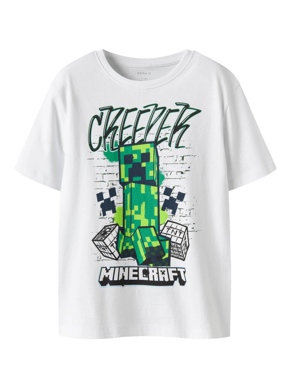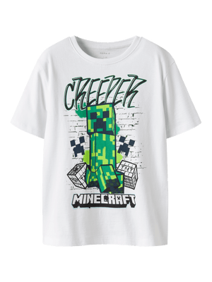 Gi barnets garderobe en oppdatering med kule og morsomme topper som er perfekte til hveredags og spesielle anledninger. Jersey er et lett og elastisk stoff med en myk overflate og innside for en behagelig følelse og bevegelsesfrihet. Minecraft er det mest solgte videospillet i historien. Minecraft har utviklet seg fra grunnlaget som et spill til en underholdningsfranchise, som leverer grenseløs lek og uendelige muligheter på tvers av generasjoner over hele verden. - Produkttype : Topp - Hals : O-hals - Erme : Korte ermer - Mønster : Gummitrykk for en myk følelse - Passform : Standard Fit