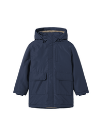 Sett sammen det perfekte antrekket til barnet ditt med hverdagsstyles av høy kvalitet, og skap en komfortabel og trendy look. NAME IT har produsert yttertøy av høy kvalitet siden 1986, med spesielt fokus på funksjonalitet og sikkerhet. Vi holder oss oppdatert på aktuelle motetrender, som vi forvandler til komfortabelt yttertøy for barn. - Produkttype : Jakke - Funksjonalitet : Pusteevne 3000g/m2/24t, Vanntetthet 3000mm - Hals : Avtakbar hette - Erme : Lange ermer - Mansjetter : Ribbemansjetter - Lukking : Glidelåslukking - Lommer : Forlommer - Fôr : Fleecefor øverst på kroppen og hetten for varme og en myk følelse - Fyll : Middels isolasjon - Detaljer : Merke, Dekorative refleksdetaljer, Avtakbar hette for sikkerhet, Elastisk linning, Glidelåsbeskytter for å hindre at glidelåsen tar tak i huden - Vask/finish : Den vannavstøtende behandlingen BIONIC FINISH® ECO betyr at fluorstoffer ikke har blitt brukt til å gjøre produktet vannavstøtende , PFAS-FRI – våre produkter inneholder ikke fluorforbindelser