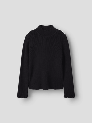 Sett sammen det perfekte antrekket til barnet ditt med hverdagsstyles av høy kvalitet, og skap en komfortabel og trendy look. Ribbestrikk har vertikalt, stripete mønster og god elastisitet for en behagelig følelse og et tidløst look. - Produkttype : Strikkegenser - Hals : Polohals - Erme : Lange ermer - Mansjetter : Rysjemansjetter - Detaljer : Knappedetalj - Passform : Regular Fit