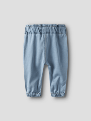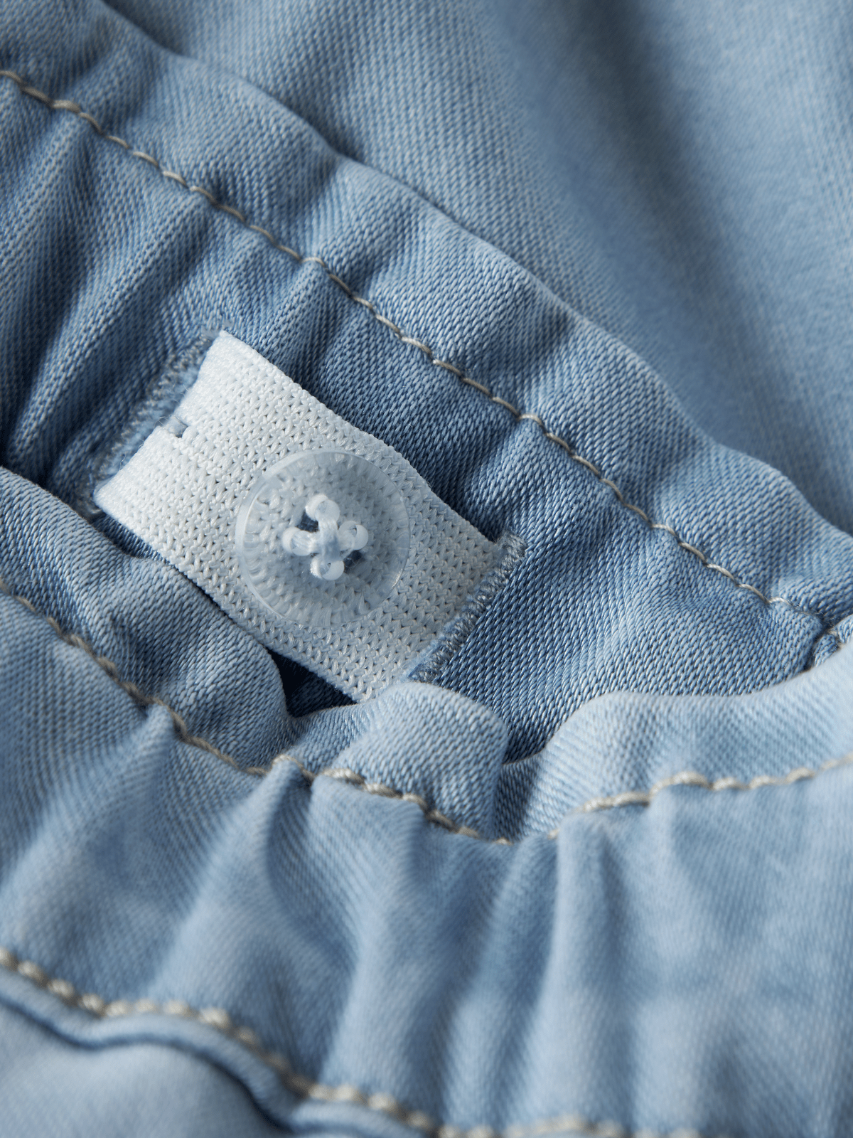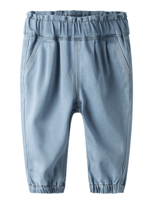 NAME IT BABY består av kvalitetsprodukter som er nøye designet for å møte behovene til babyen din. Kle babyen din i myke, vakre styles som er laget med et sterkt fokus på komfort, funksjonalitet og de siste trendene. Denim er et slitesterkt vevd stoff som finnes i flere uttrykk for et unikt look. - Produkttype : Jeans med rund passform - Lommer : Forlommer - Ben detaljer : Elastisk detalj - Detaljer : Justerbar midje, EVA-mellomsåle - Vask/finish : Diskré rifter - Passform : Regular Fit - Obs : ADVARSEL! Hold borte fra flammer.