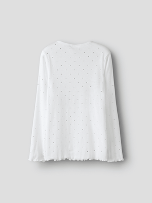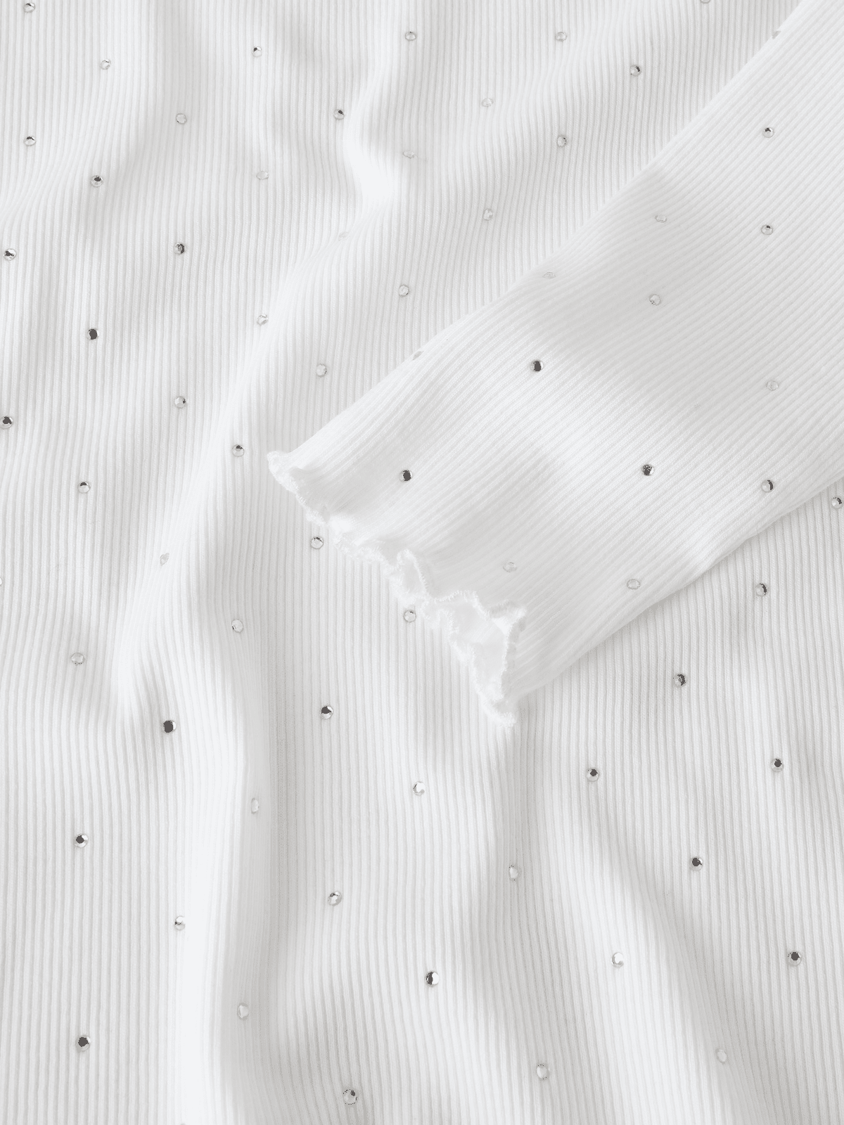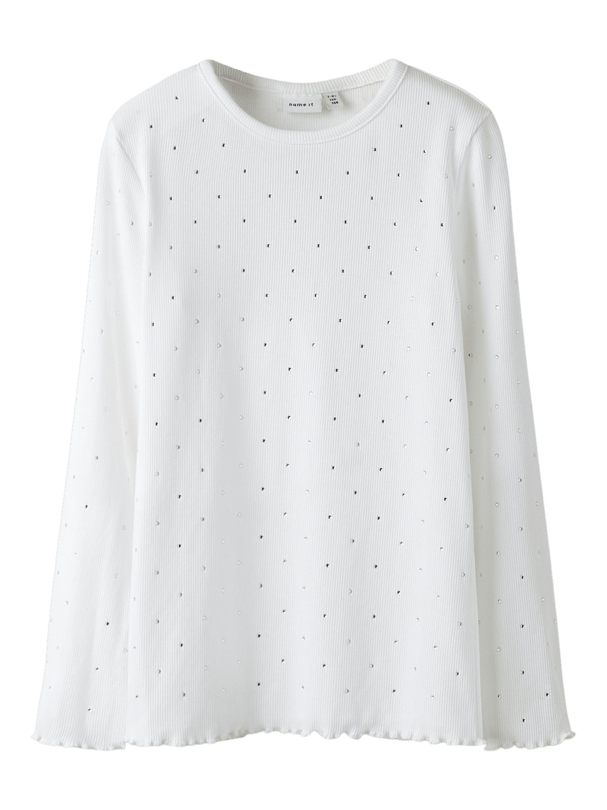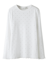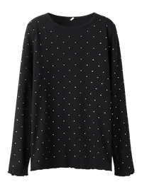 Gi barnets garderobe en oppdatering med kule og morsomme topper som er perfekte til hveredags og spesielle anledninger. Ribbestrikk har vertikalt, stripete mønster og god elastisitet for en behagelig følelse og et tidløst look. - Produkttype : T-skjorte - Hals : O-hals - Erme : Lange ermer - Detaljer : Babylock-detaljer, Pigger - Passform : Regular Fit - Obs : Perlene / paljlettene / rhinestones på denne varen kan falle av under bruk. Sørg for å lese vaske- og vedlikeholdsinstruksjonene nøye