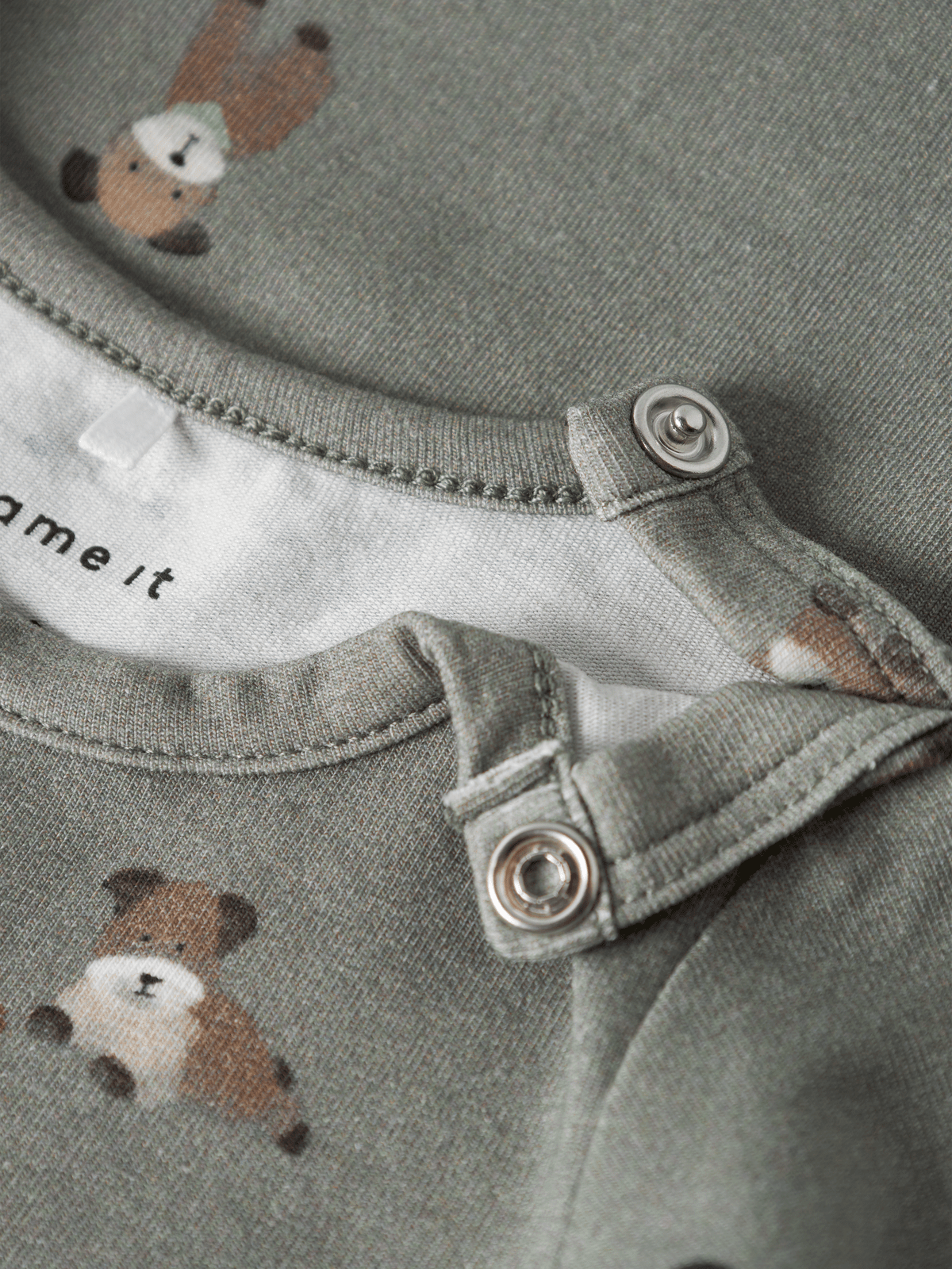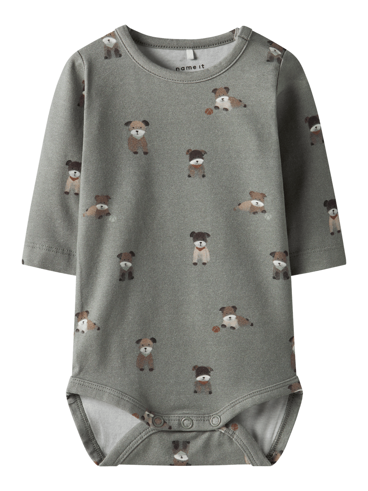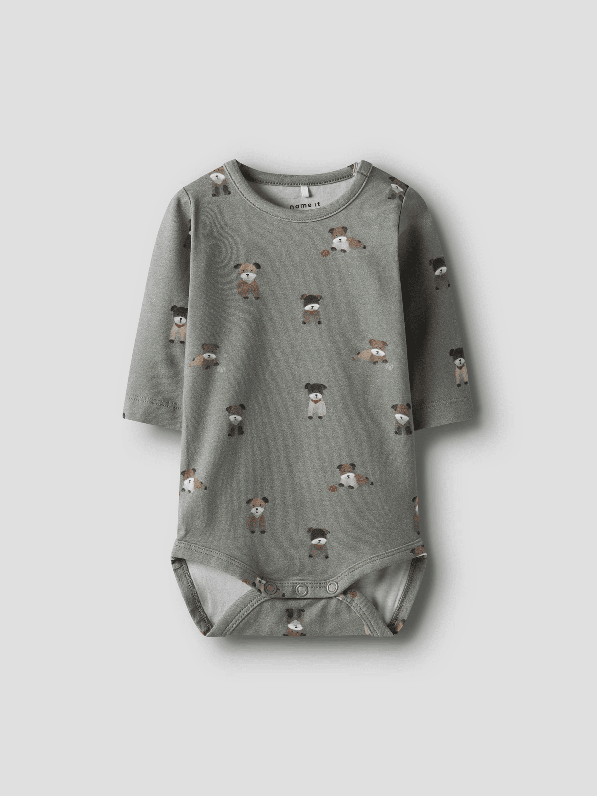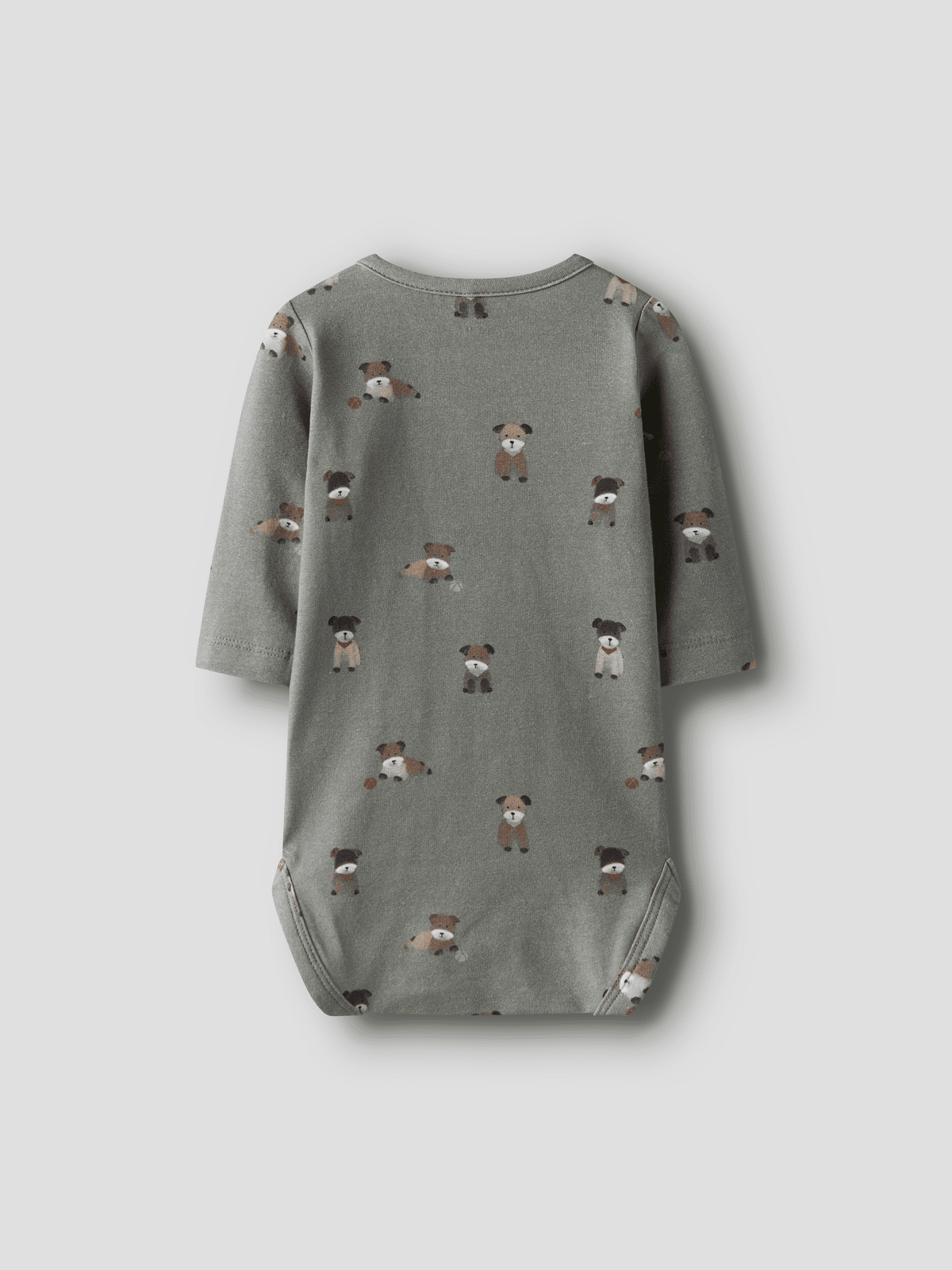 Frisk opp barnets garderobe med myke og praktiske bodyer som er perfekte å bruke hele året rundt. Jersey er et lett og elastisk stoff med en myk overflate og innside for en behagelig følelse og bevegelsesfrihet. - Produkttype : Body - Hals : O-hals - Erme : Lange ermer - Lukking : Trykknapplukking i skrittet, Trykknapplukking på skulderen - Mønster : Printet er gjentatt over hele overflaten av produktet - Obs : ADVARSEL! Hold borte fra flammer.