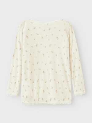 Nålefall er preget av droppede sting for unike mønstre og et søtt look. - Produkttype : Topp - Hals : O-hals - Erme : Lange ermer - Detaljer : Blondedetalj - Mønster : Printet er gjentatt over hele overflaten av produktet - Passform : Regular Fit