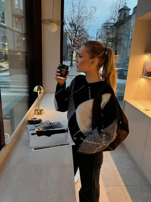 Rutemønsteret tilfører et klassisk, men samtidig lekent uttrykk som passer både til hverdagsbruk og helgeaktiviteter. Genseren er laget av et mykt materiale som holder seg fint over tid, og er lett å style lag-på-lag under jakker eller kåper når det er kjøligere ute. Et allsidig plagg som raskt blir en favoritt i garderoben.