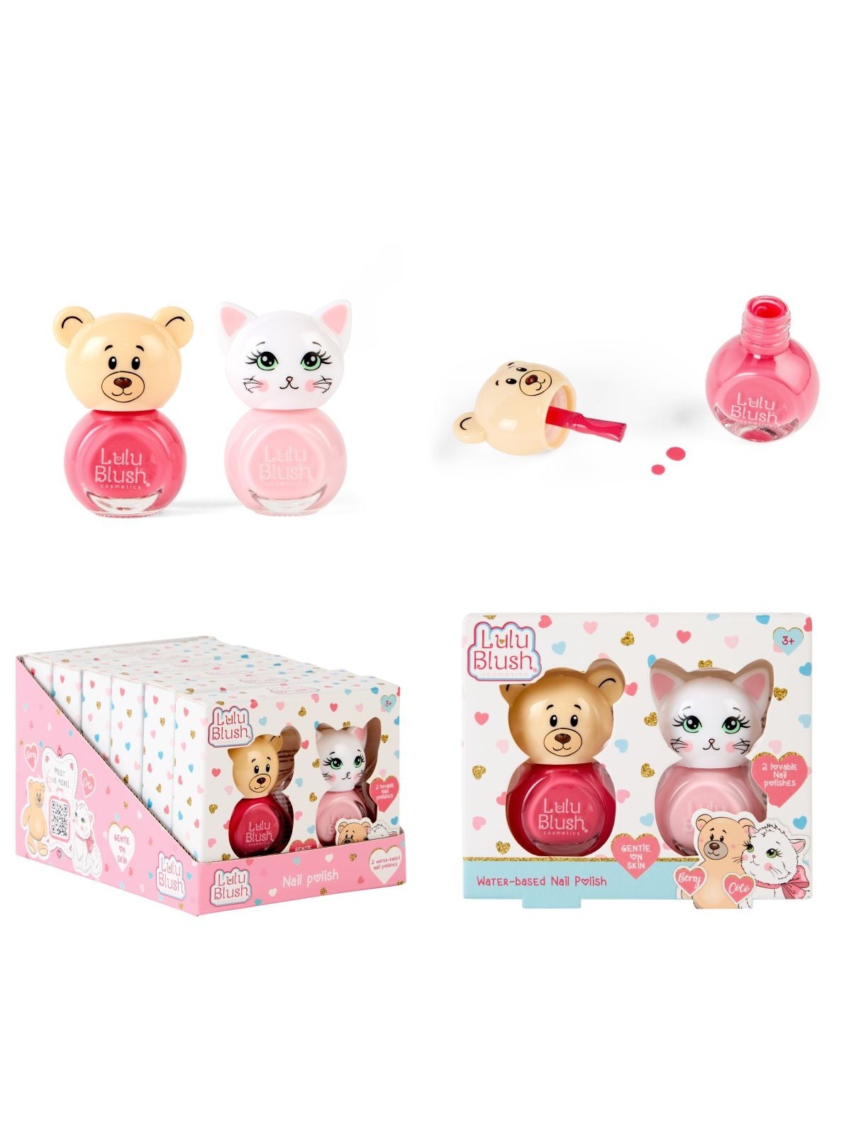 Sett med 2 vannbaserte neglelakker i søte figurer formet som bjørn og katt.