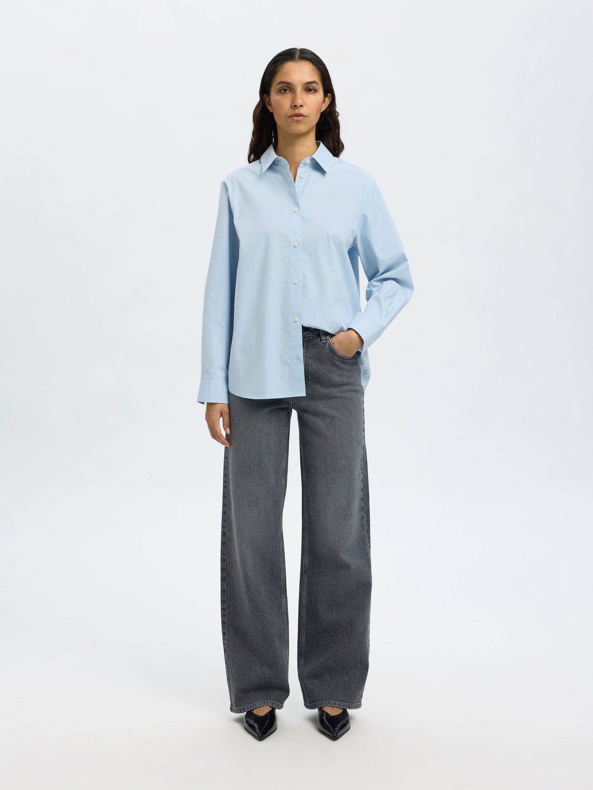 Se Ester relaxed skjorte - cashmere blue stylet på Instagram