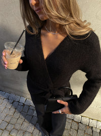 Et tidløst og komfortabelt valg til hverdagsgarderoben. - Produkttype : Cardigan - Hals : V-hals - Erme : Lange ermer - Ermer : Lave skuldre - Mansjetter : Ribbemansjetter - Lukking : Omslagslukking - Detaljer : Belte i midjen - Passform : Regular Fit