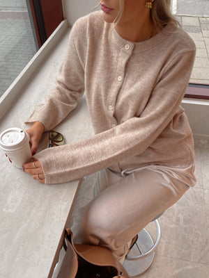 Oppdag den perfekte basecardiganen for garderoben din – en tidløs og elegant ullcardigan laget av en eksklusiv blanding av ull og alpakka. Den myke og varme kvaliteten gir både komfort og stil gjennom hele sesongen.