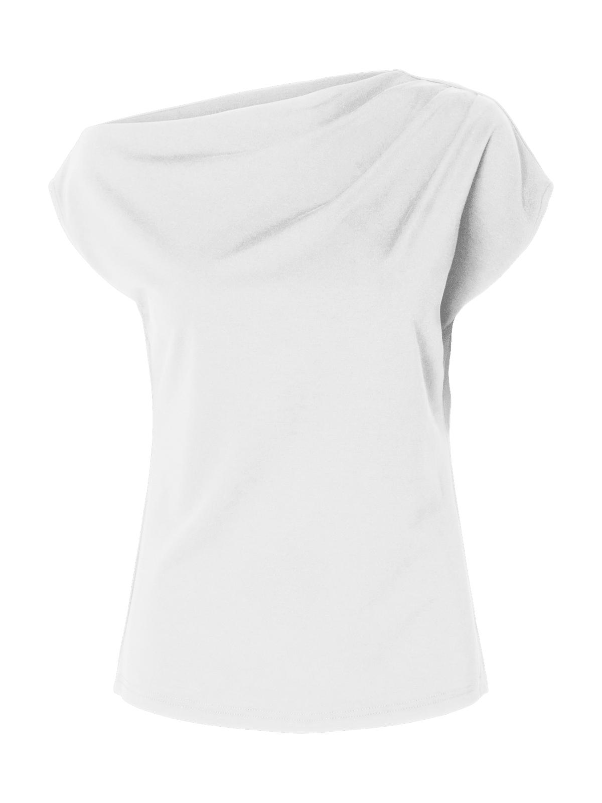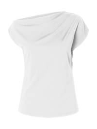 En stilren og moderne T-skjorte med asymmetrisk hals som gir et spennende og feminint uttrykk. Modellen har korte ermer og en samlet detalj som tilfører form og karakter. Regular fit sørger for en komfortabel passform som gjør den enkel å style til både hverdags og mer pyntede antrekk.