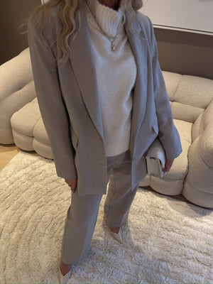 Den stilrene silhuetten gjør den enkel å style både med matchende dressbukse for et komplett og gjennomført antrekk, eller til jeans og sneakers for en mer nedtonet hverdagslook.