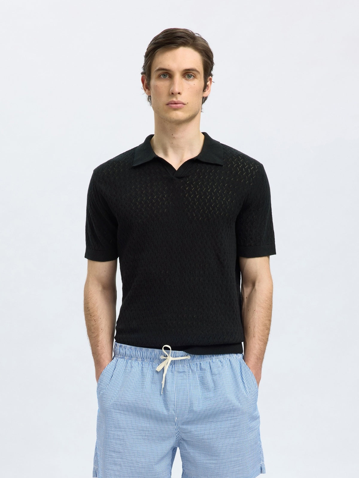 Produktnavn: SLHLINO SS KNIT CROCHET OPEN POLO