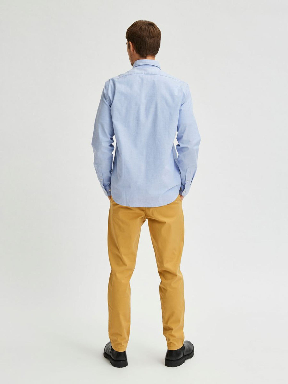 Skjorte med kneppekrage. Laget av økologisk bomull. Normal passform. Enkel brystlomme. Myk og stretchy kvalitet.