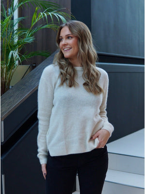 JOIE genser - Off White. Genser i fantastisk mykt materiale fra Six Ames i off-white farge. Genseren har klassisk rund hals, lange ermer og en liten splitt i sidene. Noe lengre bak enn foran.