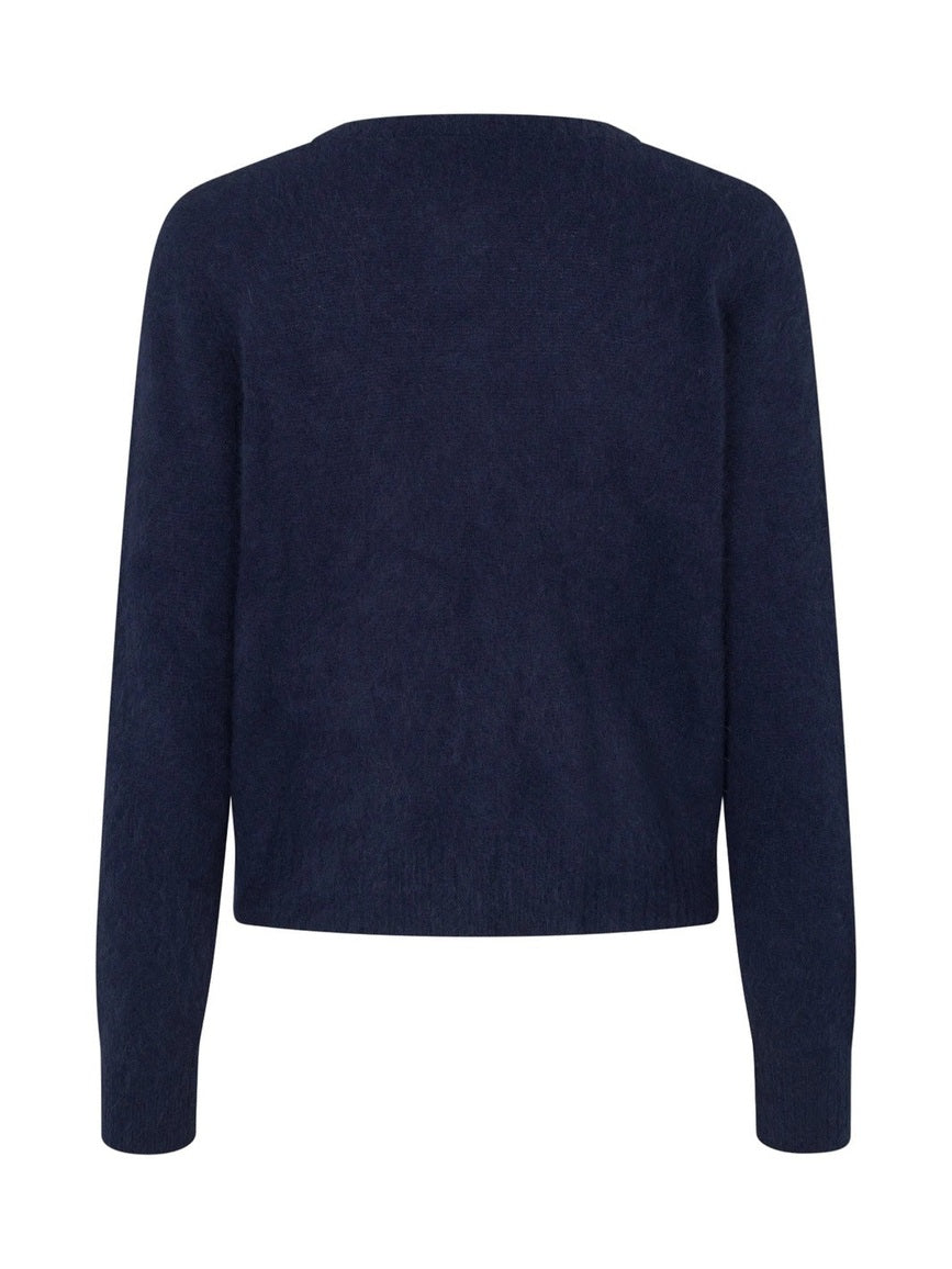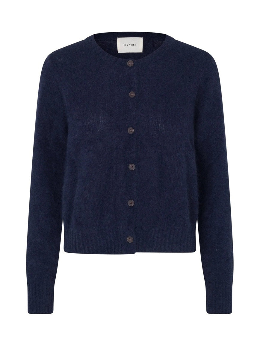 Olle fra Six Ames er cardiganen vi alltid vender tilbake til. Strikket i 100 prosent ultra myk raccoon wool gir den en lett, lun og eksklusiv følelse mot huden. Den har en feminin slim fit passform, rund hals, lange smale ermer og elegante hornknapper i front. Perfekt lag på lag over kjoler, til jeans eller dressbukser når du vil føle deg både komfortabel og velkledd. Vaskebjørnullen kommer fra en økologisk gård med frittgående dyr som klippes én gang i året, noe som gir et mykt, isolerende og pustende naturmateriale med fokus på kvalitet og ansvarlig produksjon. For deg som elsker tidløs damemote med et moderne og premium uttrykk.