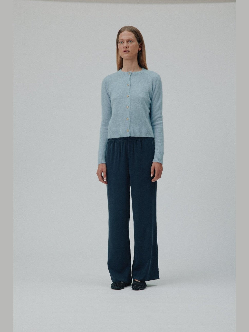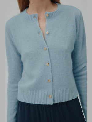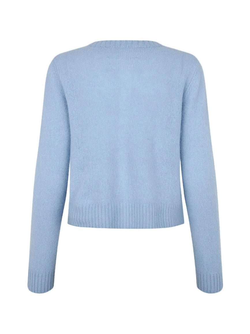 Olle fra Six Ames er cardiganen vi alltid vender tilbake til. Strikket i 100 prosent ultra myk raccoon wool gir den en lett, lun og eksklusiv følelse mot huden. Den har en feminin slim fit passform, rund hals, lange smale ermer og elegante hornknapper i front. Perfekt lag på lag over kjoler, til jeans eller dressbukser når du vil føle deg både komfortabel og velkledd. Vaskebjørnullen kommer fra en økologisk gård med frittgående dyr som klippes én gang i året, noe som gir et mykt, isolerende og pustende naturmateriale med fokus på kvalitet og ansvarlig produksjon. For deg som elsker tidløs damemote med et moderne og premium uttrykk.