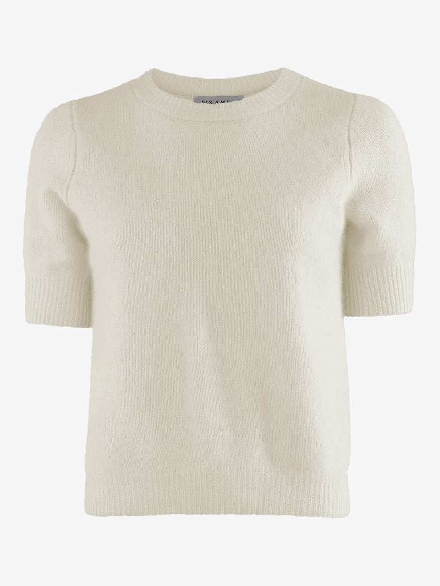 Rocca er en t-skjorteinspirert genser laget av 100 % ultramykt vaskebjørn-ull. Den har en avslappet passform, albuelange ermer og en rund hals. Ribbestrikkede kanter på ermene, nederst og i halsen gir et diskré strukturert uttrykk, mens det lette, men varme strikkematerialet gjør genseren allsidig – perfekt både alene og som lag-på-lag-plagg.