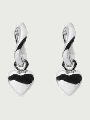 Hjerteformede øredobber med organisk design og et hjertesmykke. En vakker gave til noen du elsker, eller til deg selv. Nikkelfri. 14 mm.