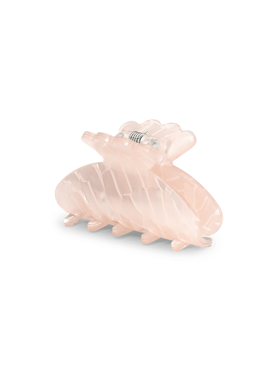 Hårklypen har et elegant, bølgeformet design i en delikat pastell beige og rosa fargetone. Den kompakte størrelsen gjør den ideell for å holde små seksjoner av håret på plass. Metallfjæren gir et godt grep, samtidig som den sikrer en rask og enkel stylingopplevelse.