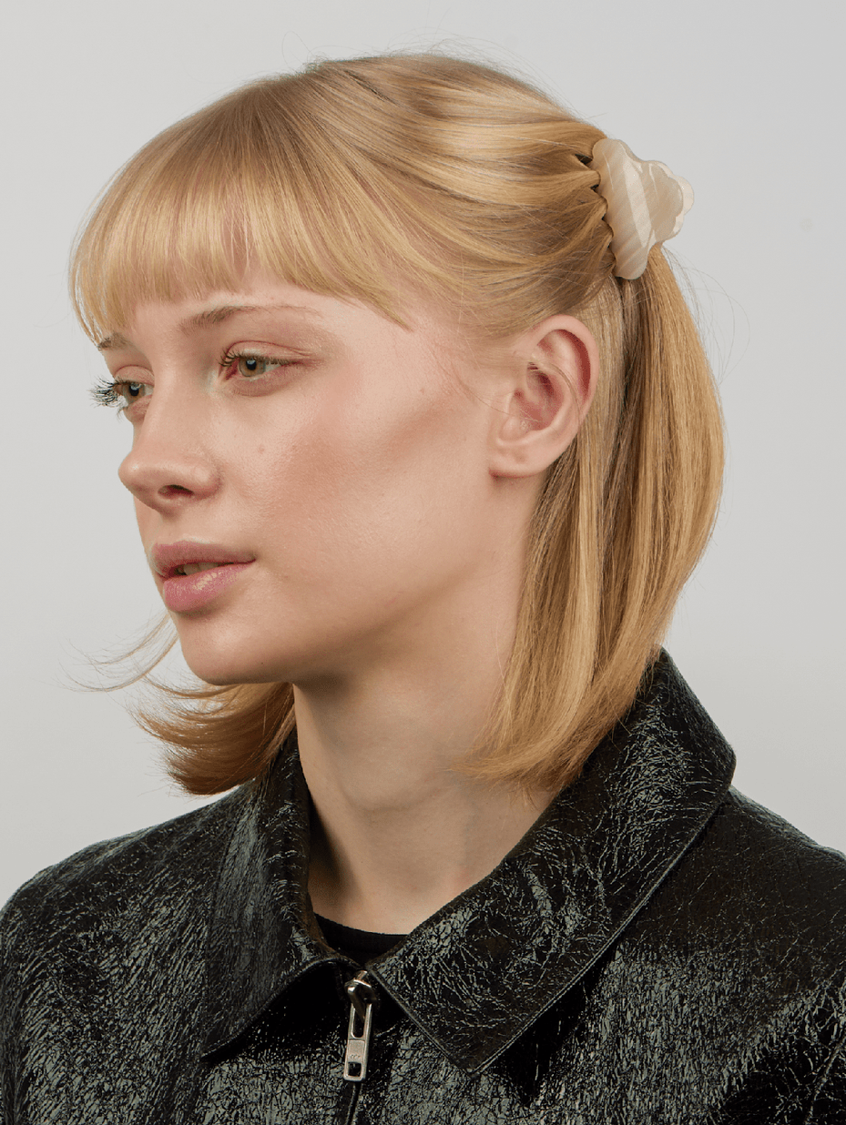 Den myke, nøytrale tonen passer sømløst inn i sesongens damemote og gir et tidløst, feminint uttrykk. Style den til hverdags med strikk og jeans, eller bruk den til kjole og blazer for en mer pyntet look. En allsidig og trendy hårklype som fungerer året rundt og passer både til jobb, fest og hverdag.