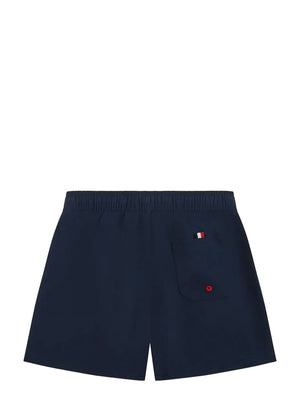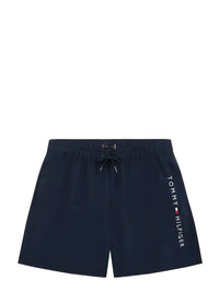 Disse badebuksene kommer i en mørk blå nyanse som gir et klassisk og tidløst utseende. Designet er enkelt med en behagelig elastisk midje og justerbar snor for komfortabel passform. Logoen er stilfullt plassert på siden, noe som gir et ekstra stilpoeng. En praktisk lomme på baksiden gir enkel oppbevaring, noe som er praktisk når du er på stranden eller ved bassenget.